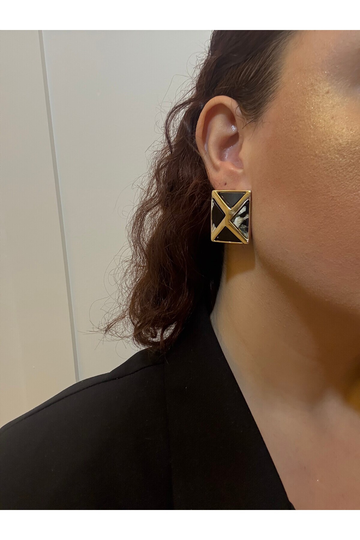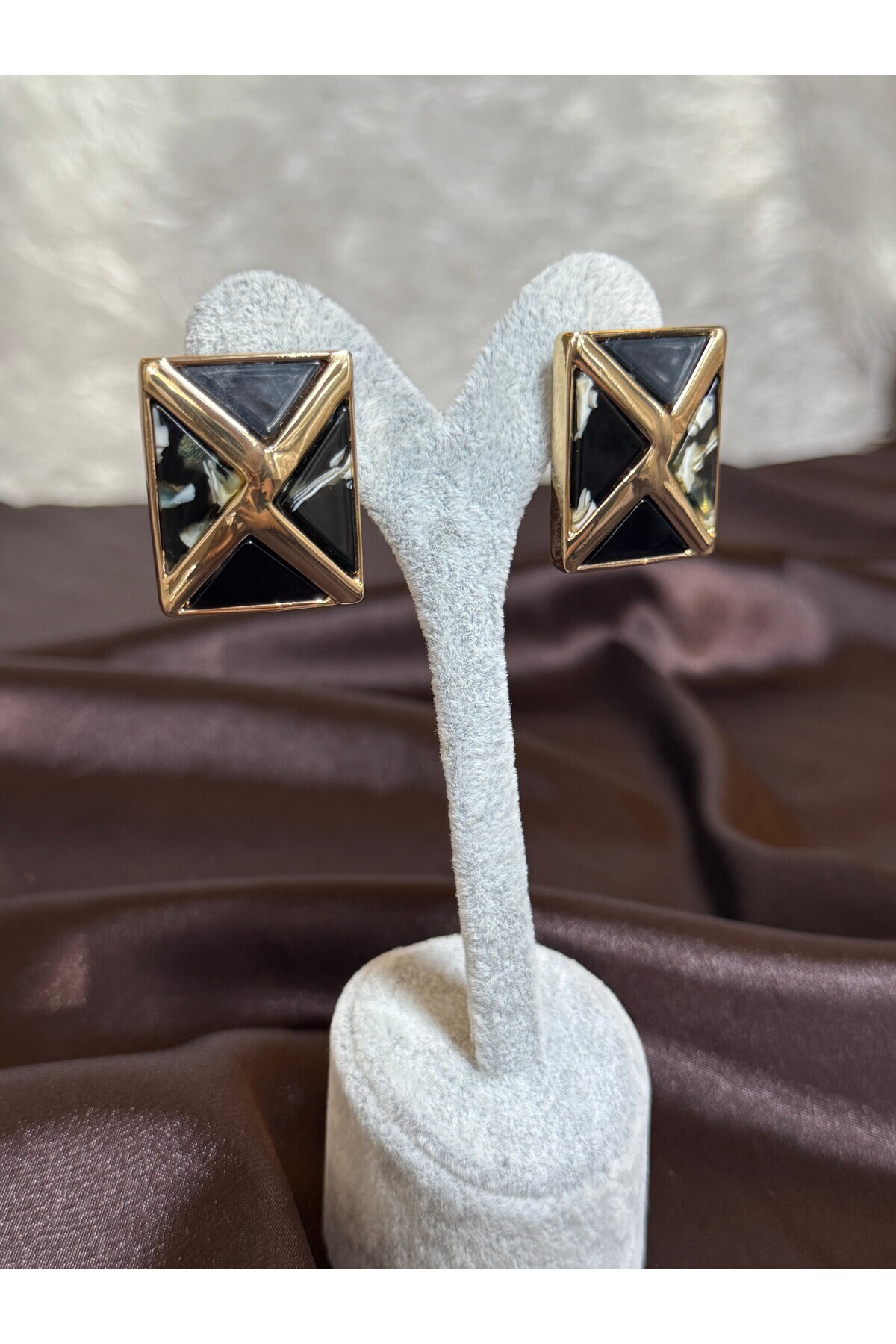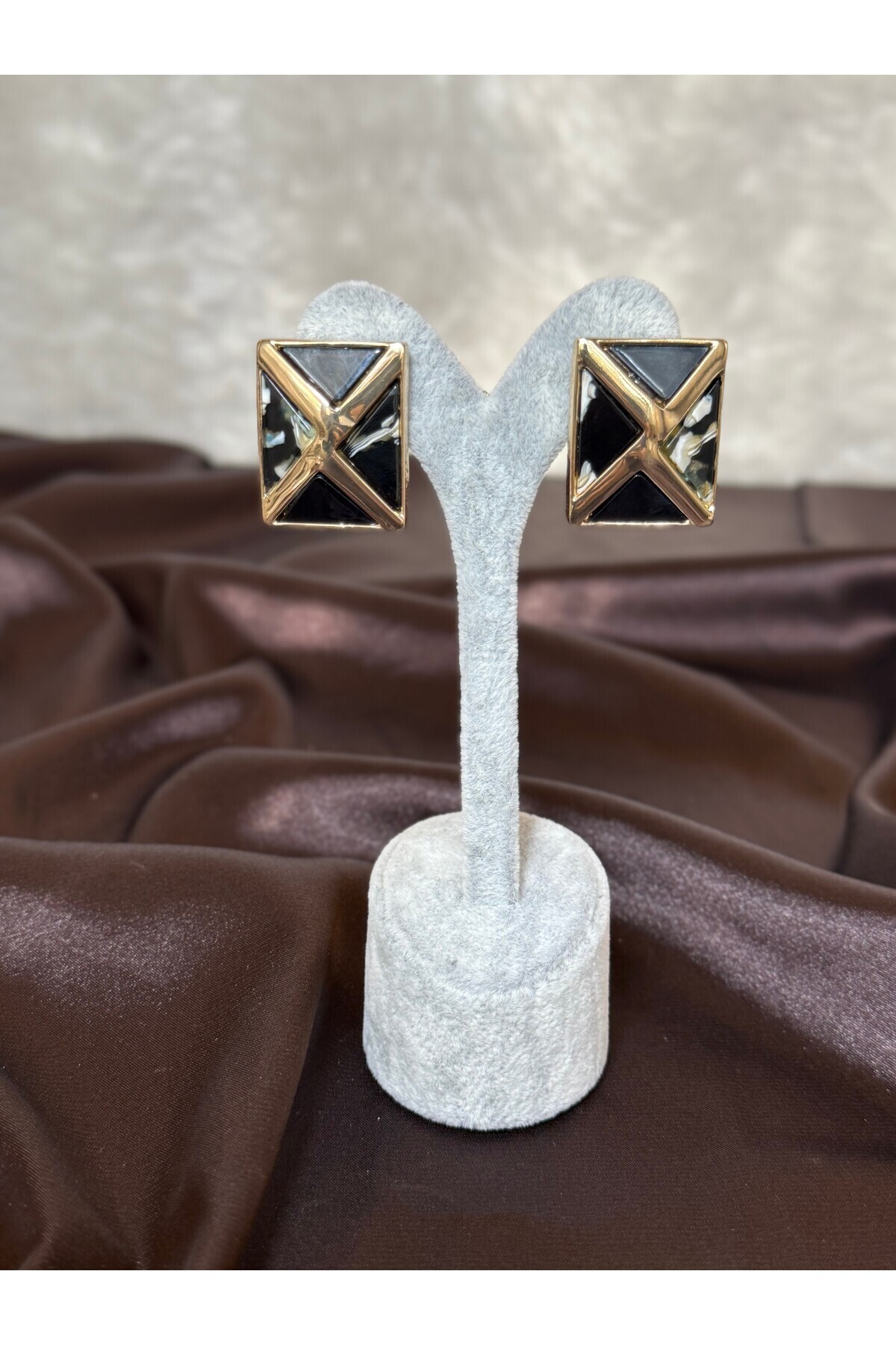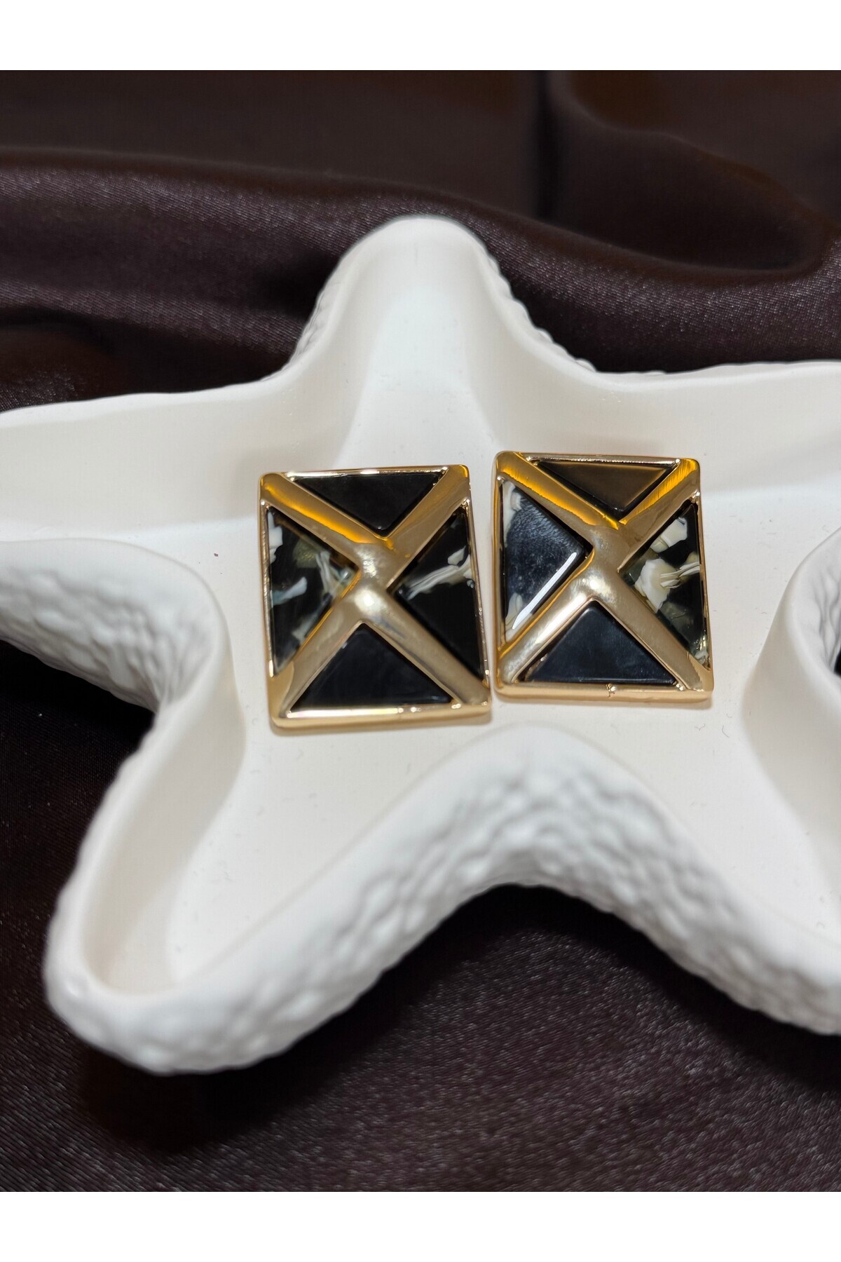 Siyah Gold Kare Vintage Küpe Siyah Gold Kare Vintage Küpe ED63 تک سایز