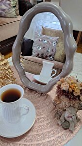 Modern bulut formlu makyaj aynası , takı tabağı , duvar aynası parlak latte renk Modern bulut formlu makyaj aynası , takı tabağı , duvar aynası parlak latte renk NU250051 27 x 22