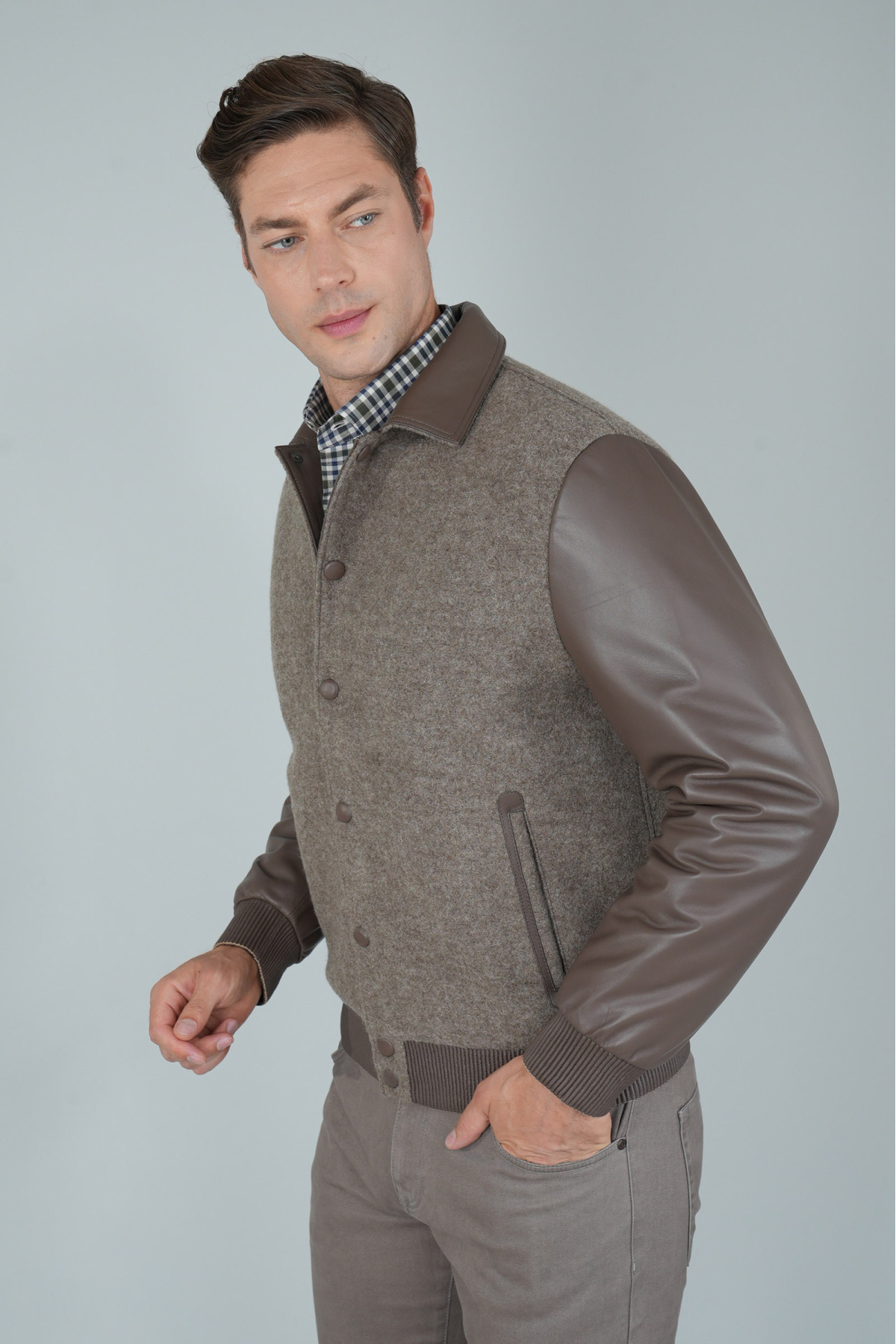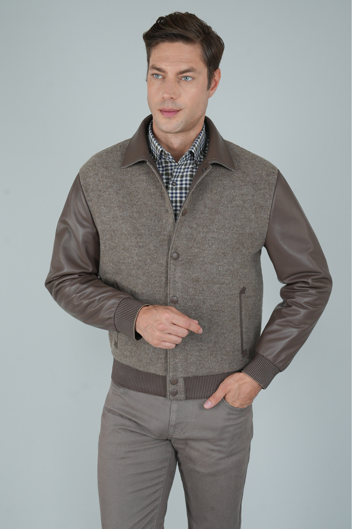 Erkek Kolları Deri Kaşe Mont Vizon Erkek Kolları Deri Kaşe Mont Vizon MN25K25204_D08 2XL