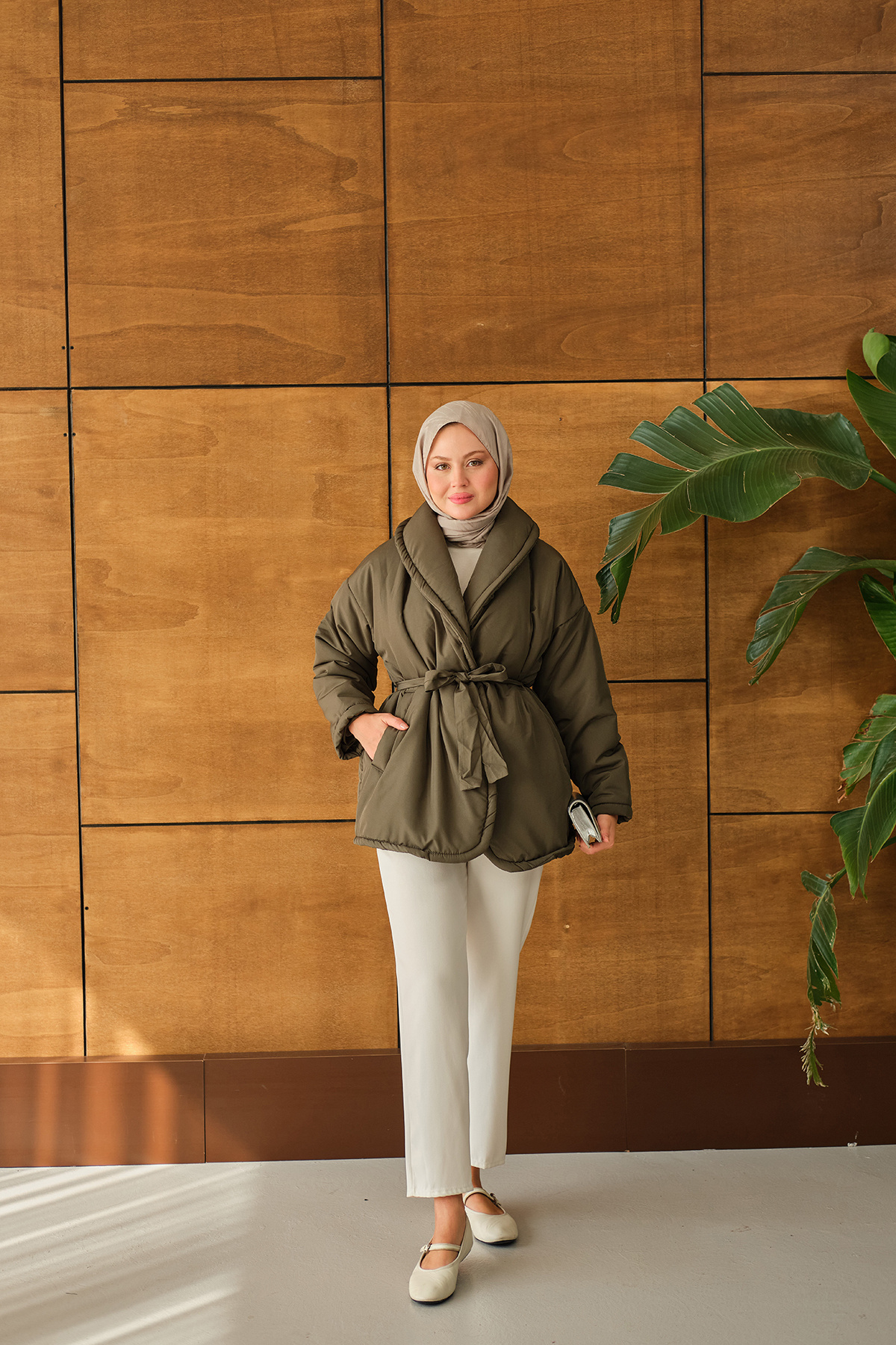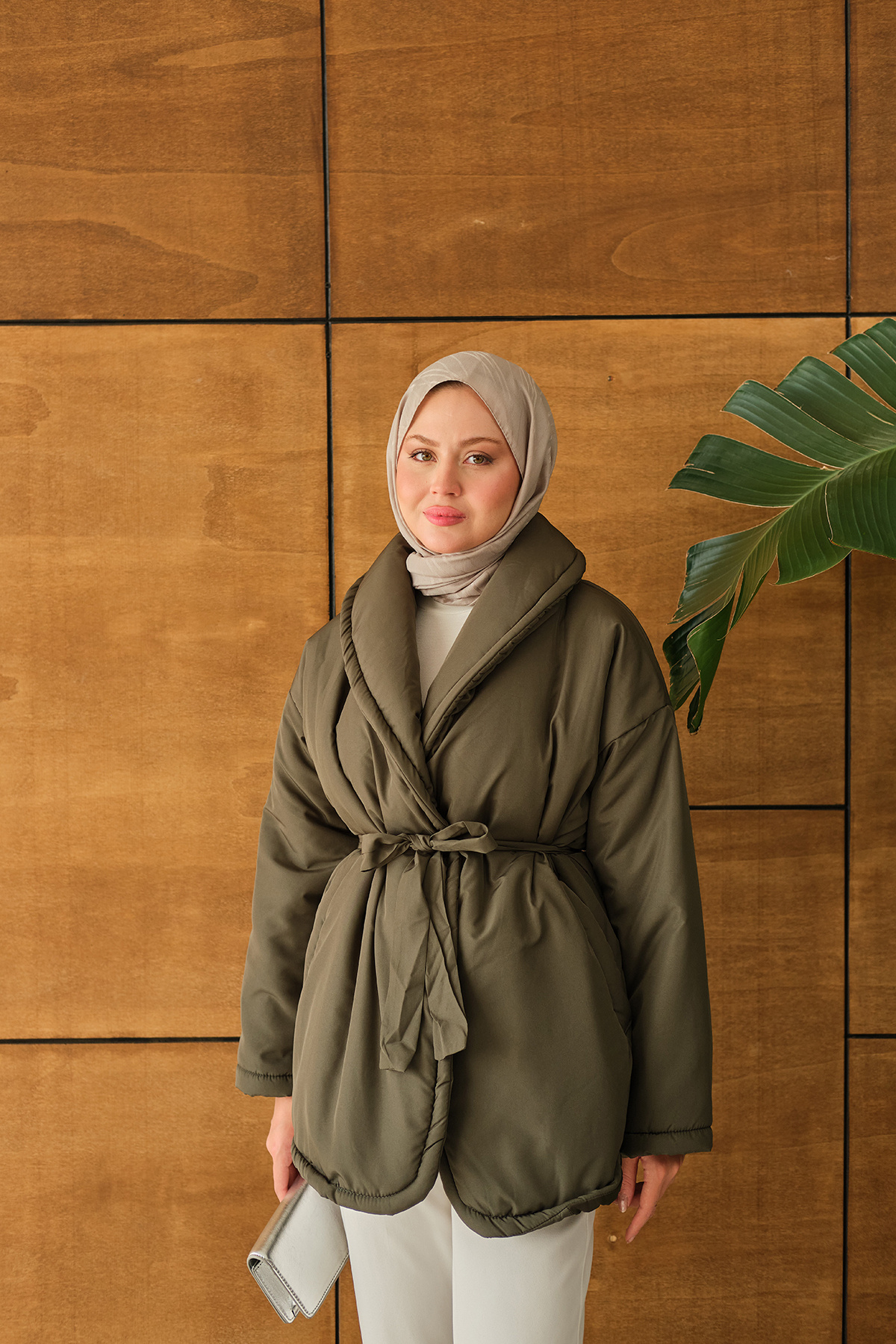Kadın Kuşaklı Şişme Mont Haki Yeşil Kadın Kuşaklı Şişme Mont Haki Yeşil 133-5912 L/XL