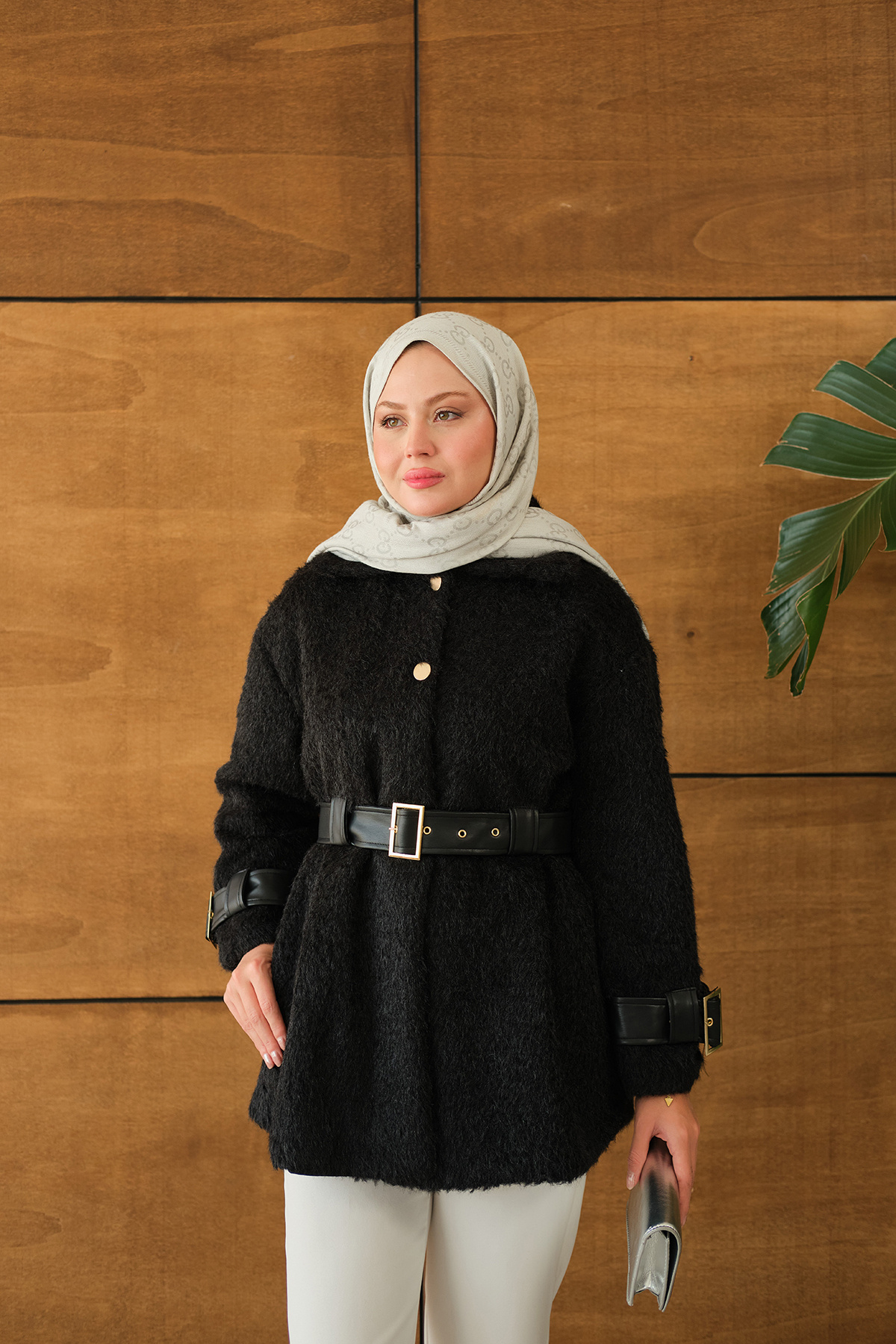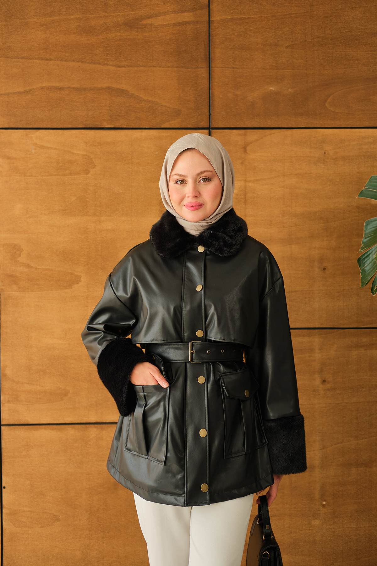 Kadın Bilek Ve Yaka Kürklü Deri Ceket Siyah Kadın Bilek Ve Yaka Kürklü Deri Ceket Siyah 159-9357 L/XL