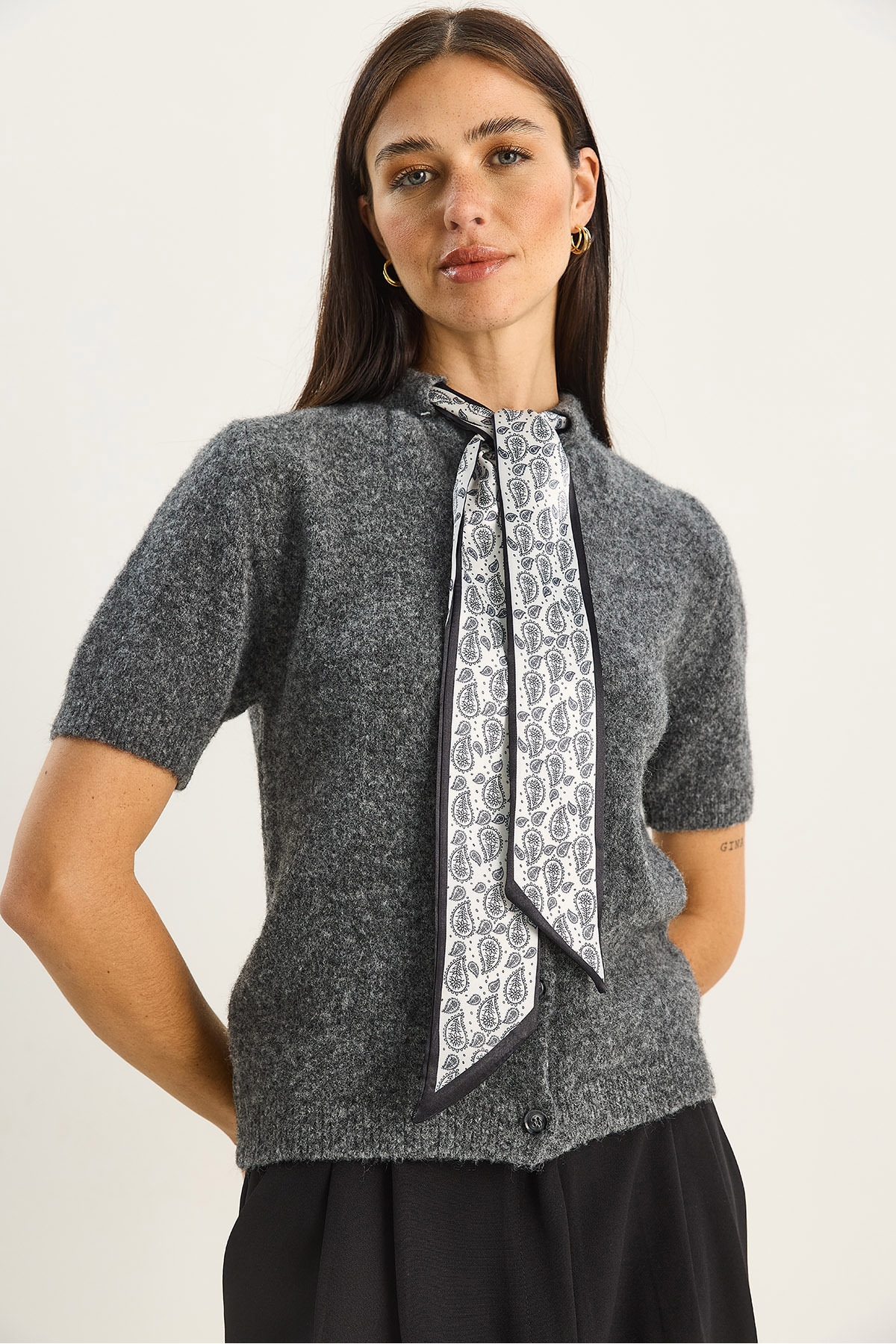 Kadın Fular Aksesuarlı Kısa Kollu Triko Hırka 9058 60283765 Kadın Fular Aksesuarlı Kısa Kollu Triko Hırka 9058 60283765 Standart