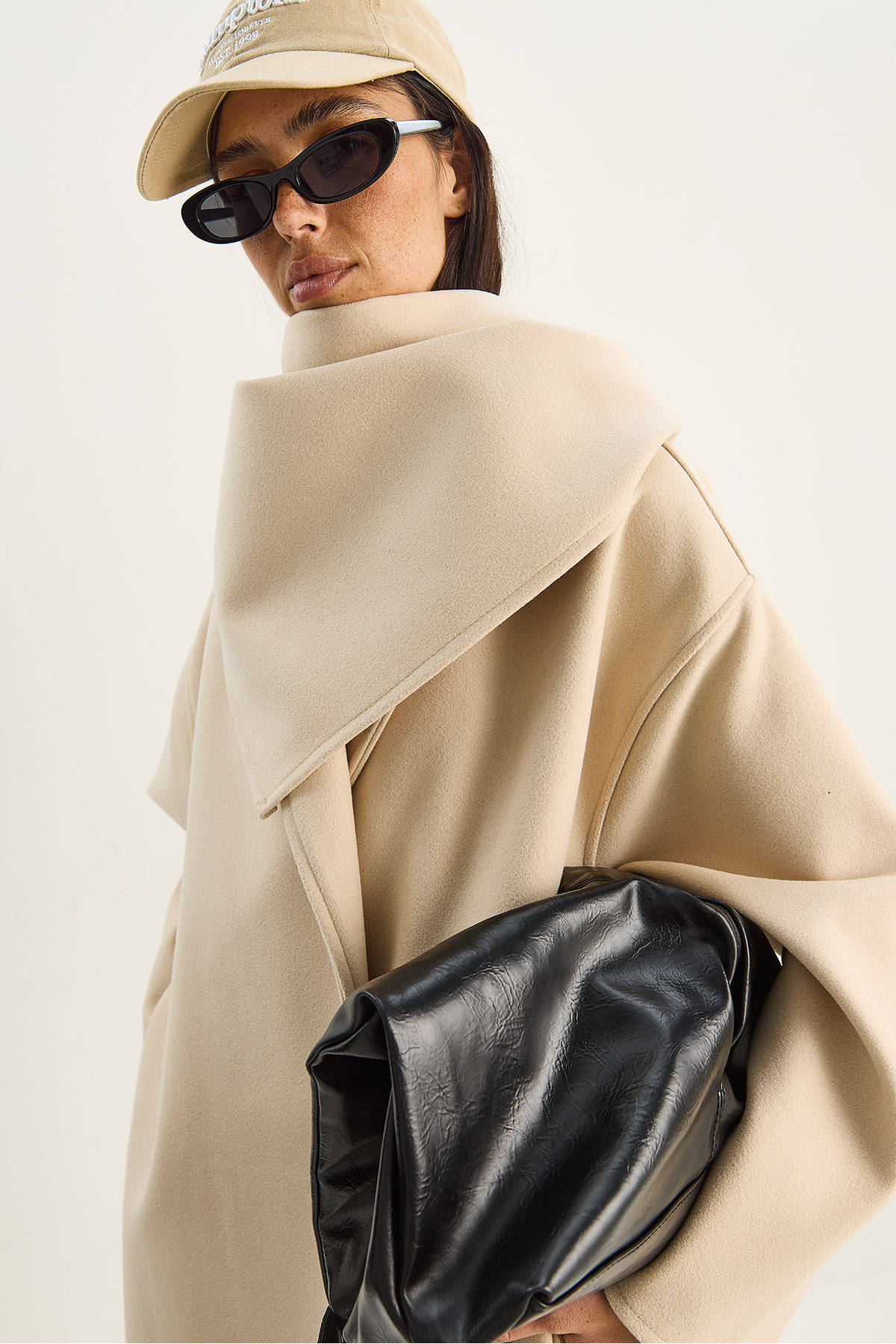 Kadın Klapa Yaka Fular Aksesuarlı Oversize Kaşe Kaban 0215 60283771 Kadın Klapa Yaka Fular Aksesuarlı Oversize Kaşe Kaban 0215 60283771 XL