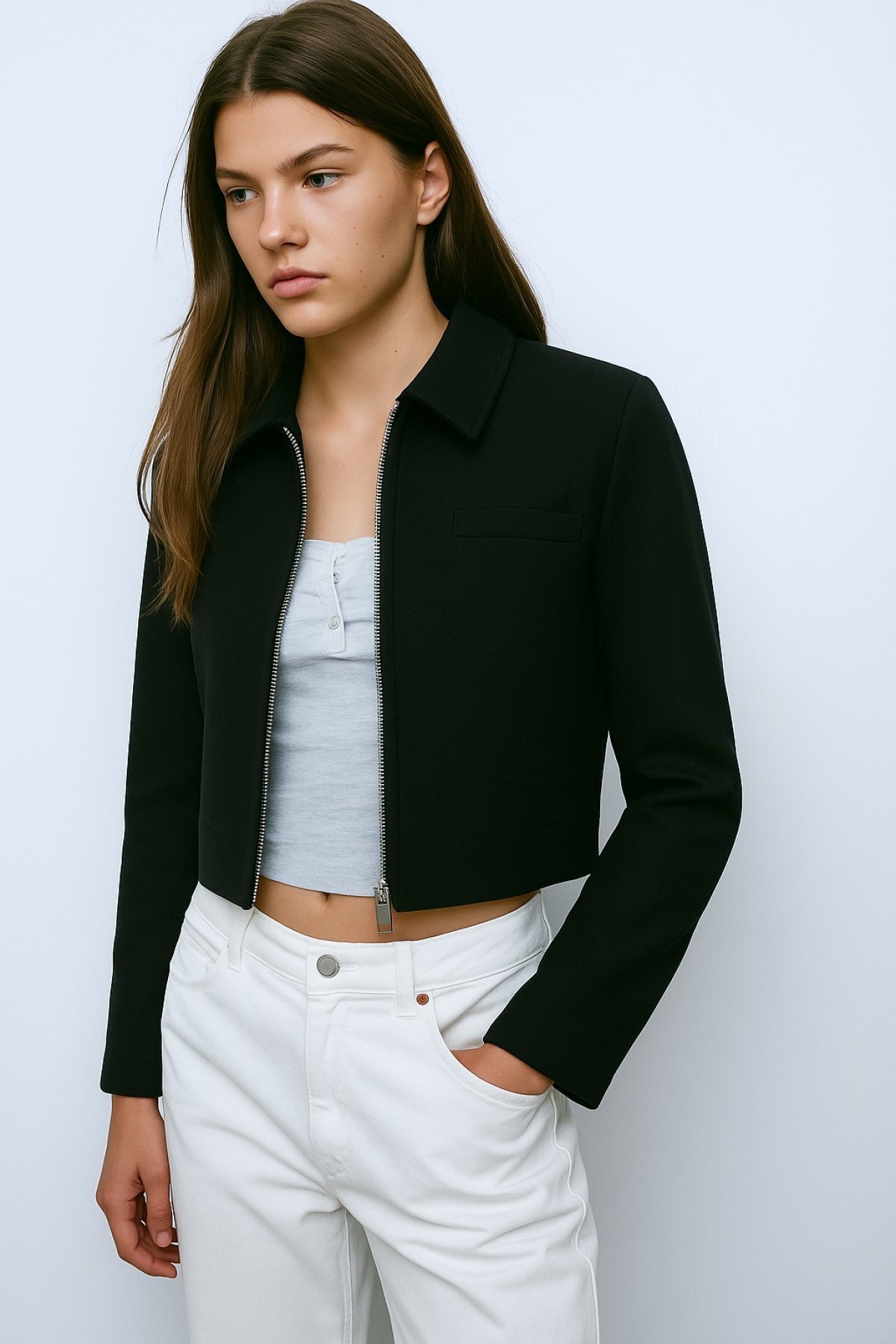 Fermuarlı Kaşe Crop CEKET Fermuarlı Kaşe Crop CEKET 6901kelgckt0001 XL