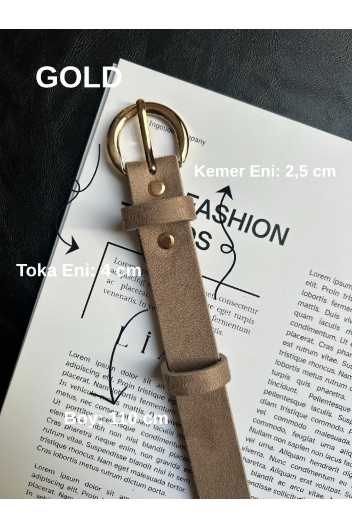 Illume Yuvarlak Desenli Süet Kadın Gold Tokalı Bel Kemeri Ceket Kemeri Elbise Kemeri Pantolon Kemeri Illume Yuvarlak Desenli Süet Kadın Gold Tokalı Bel Kemeri Ceket Kemeri Elbise Kemeri Pantolon Kemeri L-1809 تک سایز