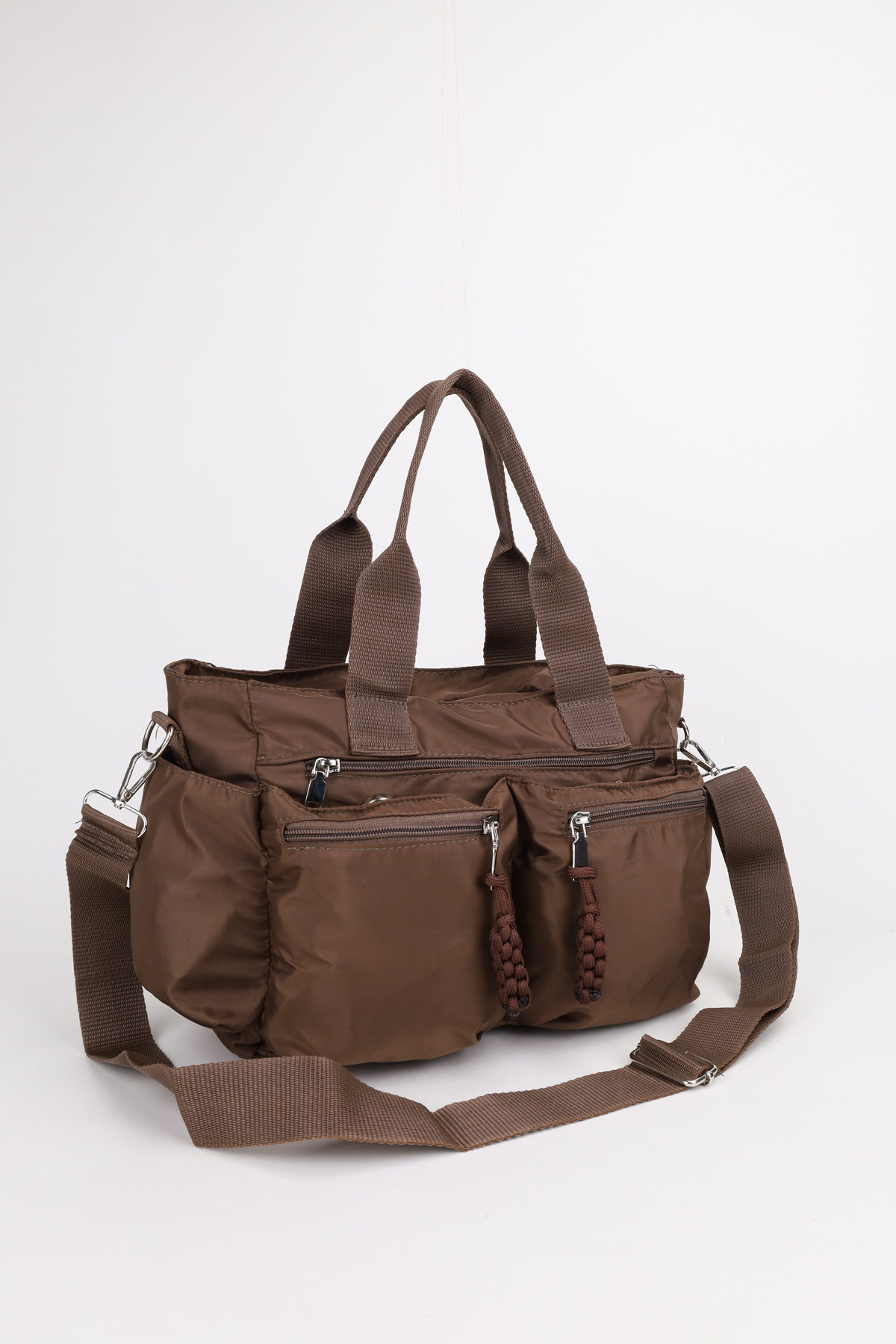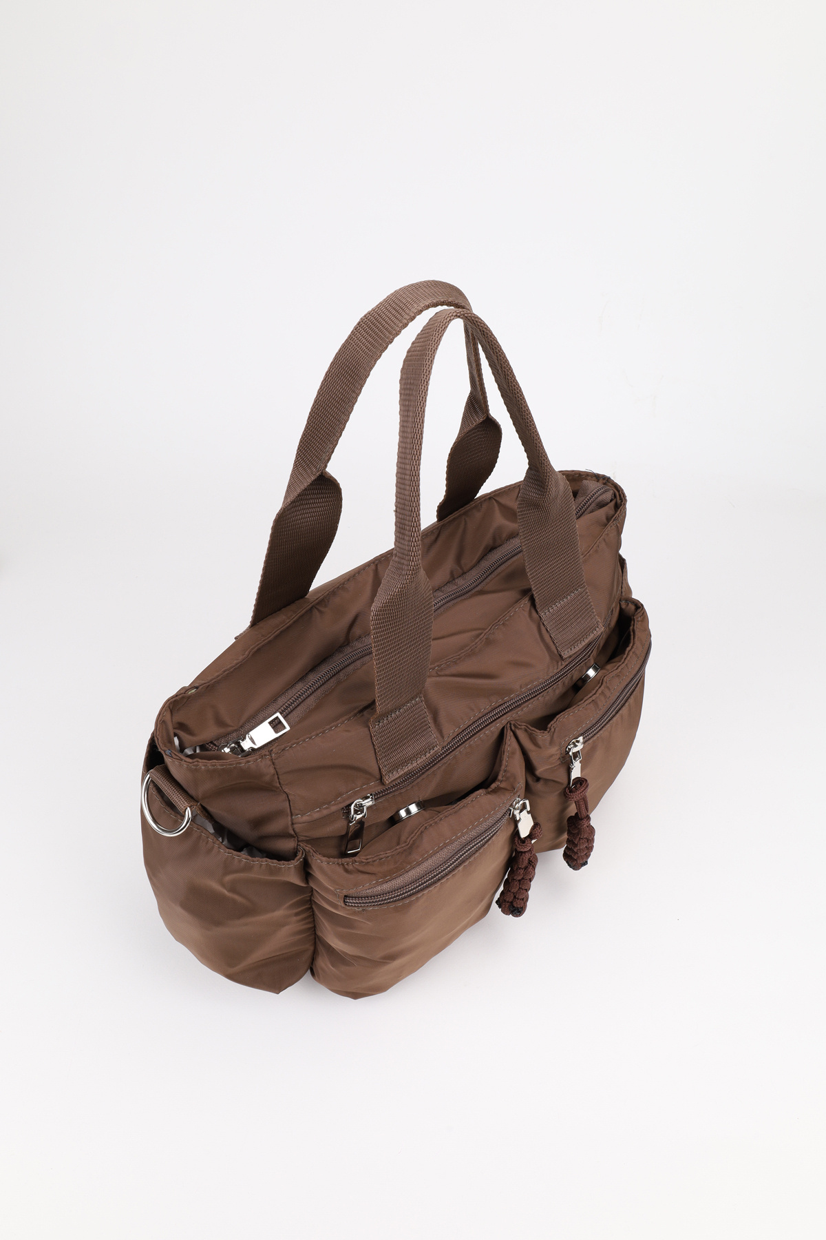 Kadın Kahve Paraşüt Kumaş Çok Gözlü El ve Omuz Çantası Bera Kadın Kahve Paraşüt Kumaş Çok Gözlü El ve Omuz Çantası Bera BERA111111 تک سایز