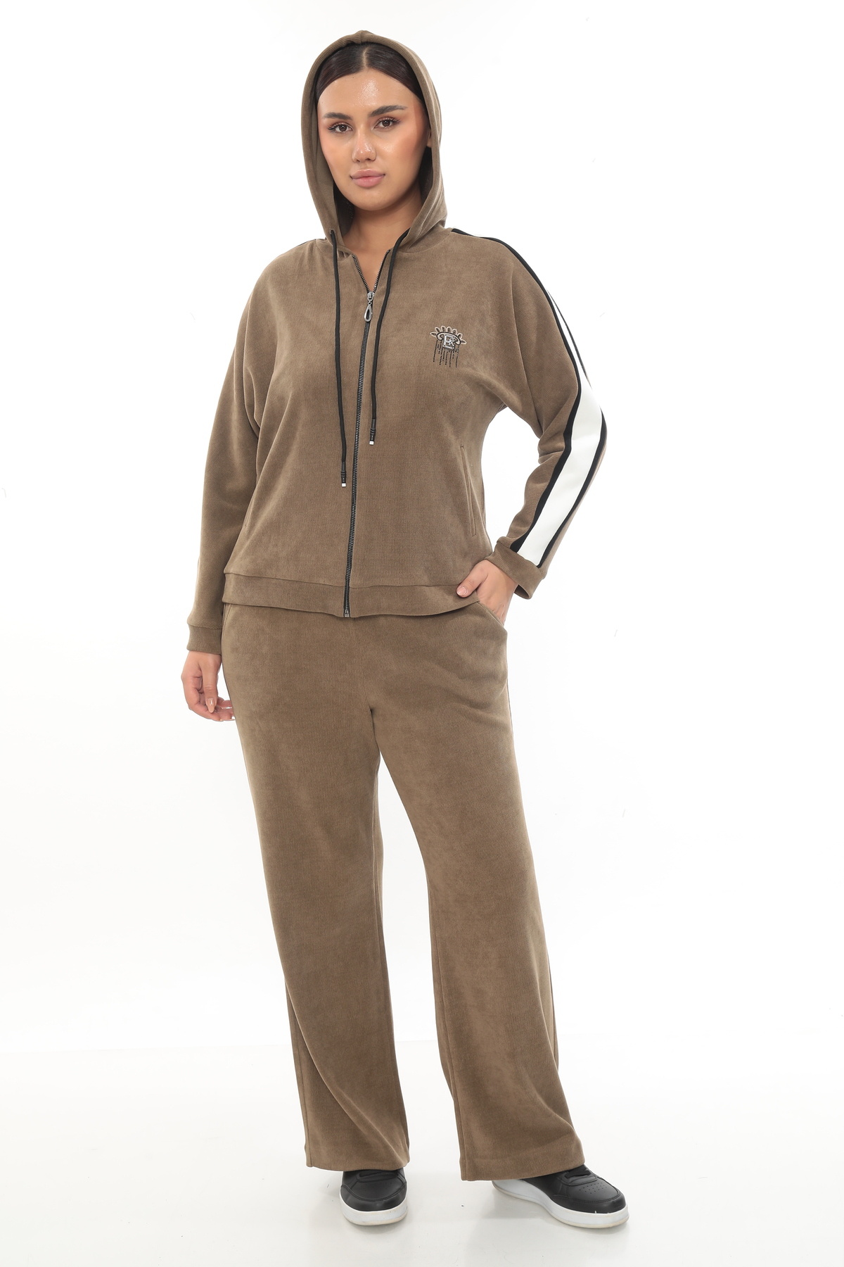 Kadın Kışlık Özel Armalı Fermuarlı Kapşonlu Taşlı Kahverengi Kadife Eşofman Takımı Kadın Kışlık Özel Armalı Fermuarlı Kapşonlu Taşlı Kahverengi Kadife Eşofman Takımı 7-300-4428-3058 42