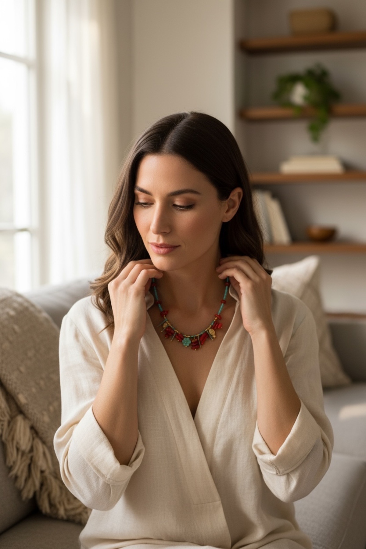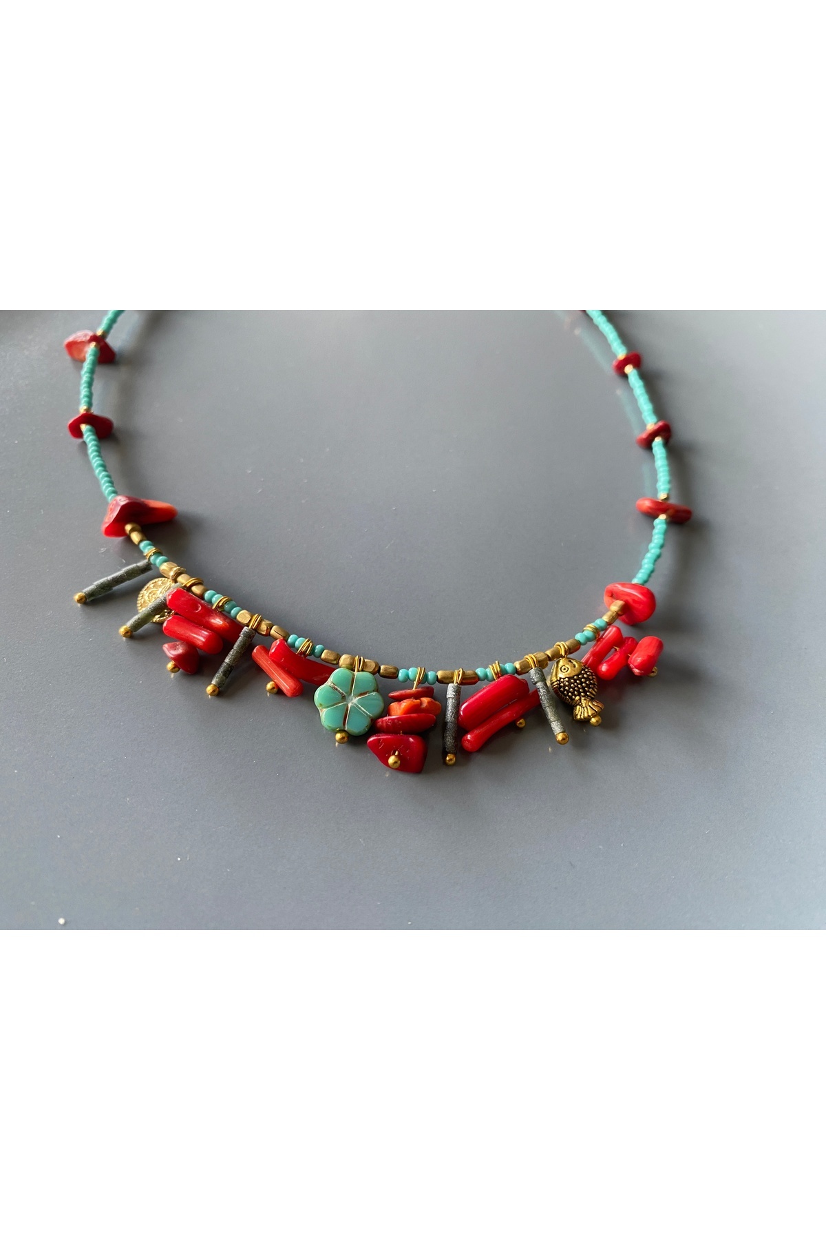 Kırmızı Mercan ve Turkuaz Boncuklu Bohem Kolye – El Yapımı Etnik Otantik Charm Tasarım Bijuteri Takı Kırmızı Mercan ve Turkuaz Boncuklu Bohem Kolye – El Yapımı Etnik Otantik Charm Tasarım Bijuteri Takı 4397998531 تک سایز