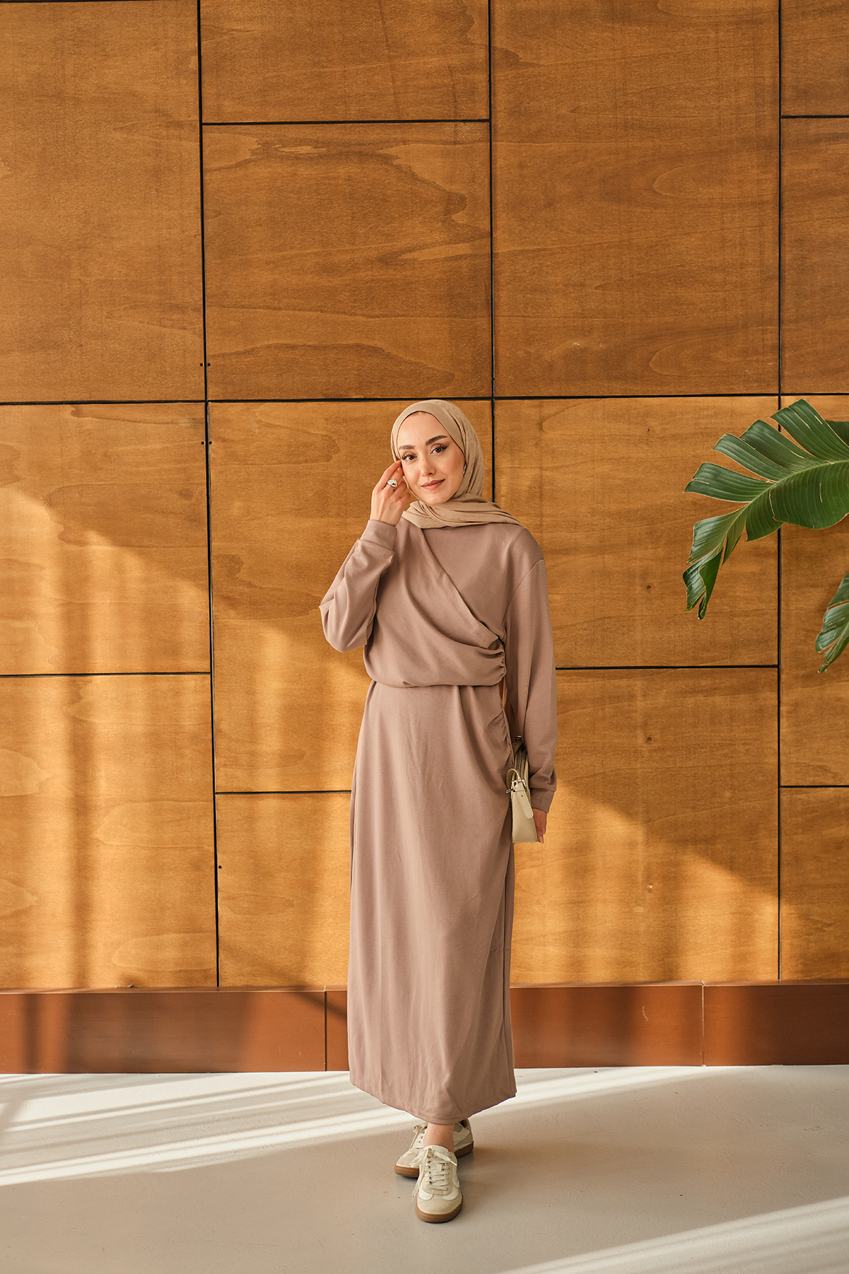 Kadın Önü Parça Detaylı Elbise Vizon Kadın Önü Parça Detaylı Elbise Vizon 112-502 L/XL