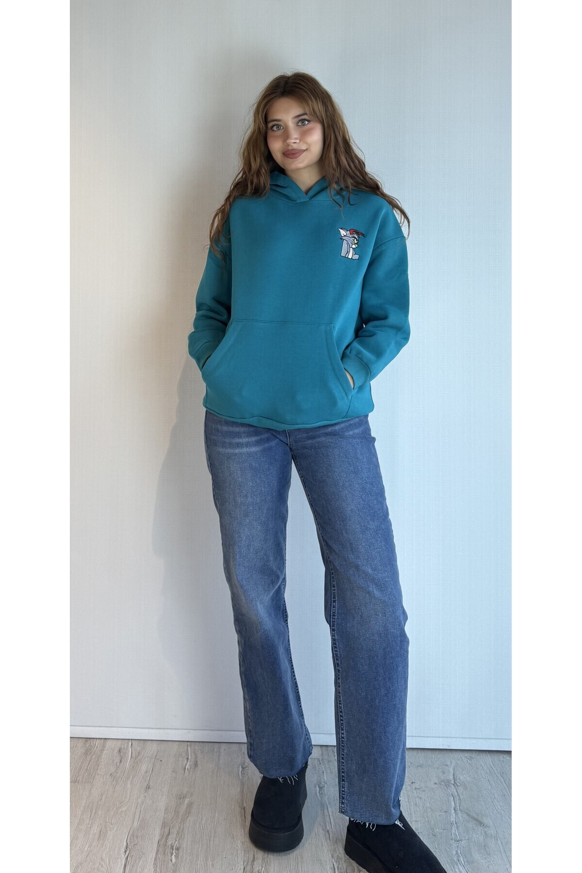 Kadın Kapüşonlu Baskı Detaylı Kanguru Cepli Oversize Sweatshirt Kadın Kapüşonlu Baskı Detaylı Kanguru Cepli Oversize Sweatshirt 8187nakışlısweat Standart