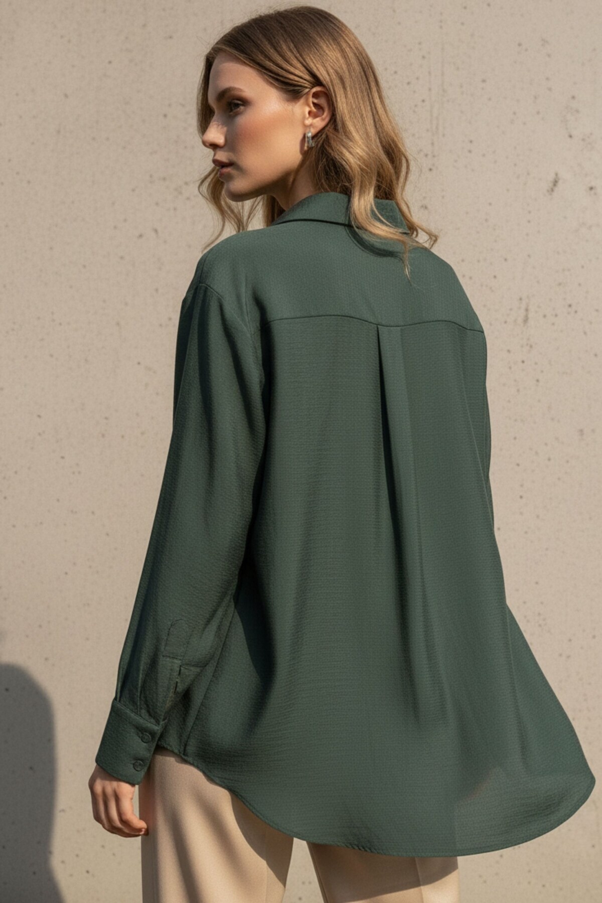 Regular Zümrüt Yeşili Jakarlı İpeksi Yumuşaklıkta Dokulu Kadın Gömlek Modal Kadın Gömlek, Regular Zümrüt Yeşili Jakarlı İpeksi Yumuşaklıkta Dokulu Kadın Gömlek Modal Kadın Gömlek, PRA-13286860-441856 46