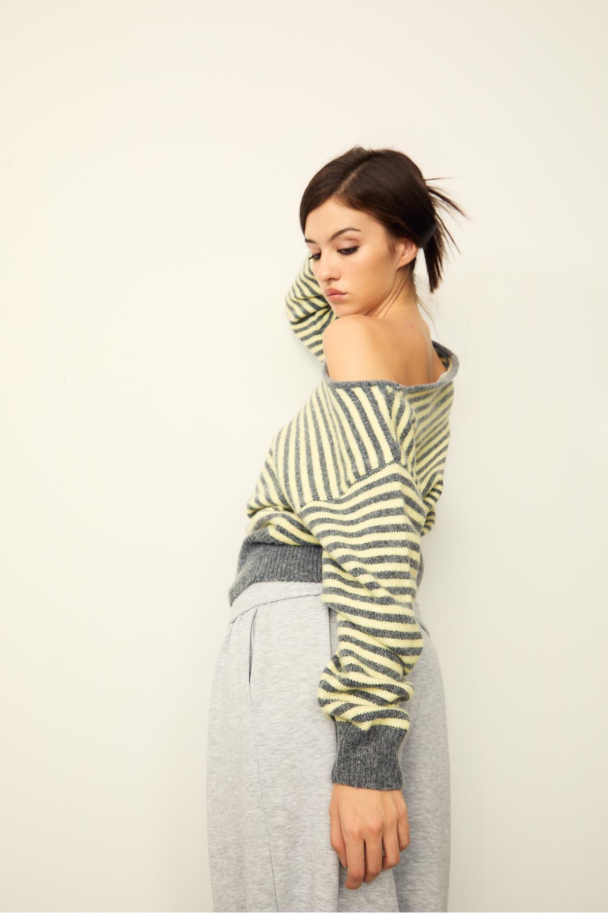 Çizgili geniş yaka kazak Çizgili geniş yaka kazak 08570685 XL