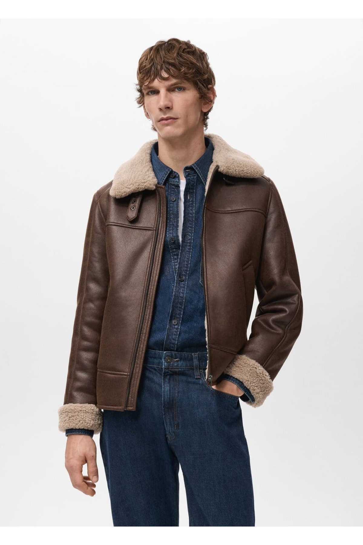 Kürklü deri görünümlü mont Kürklü deri görünümlü mont 27091170 2XL