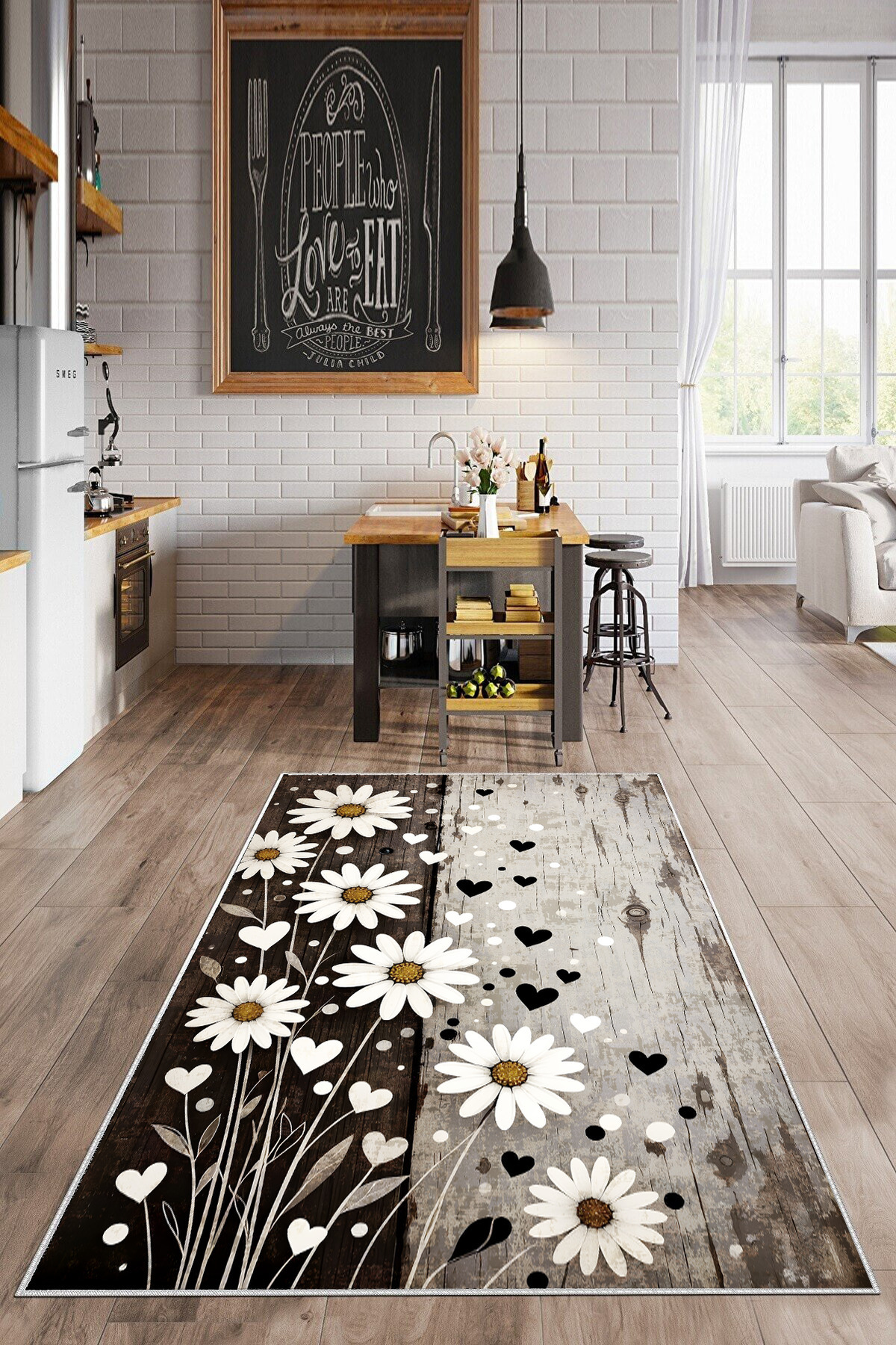 Kaymaz Taban Yıkanabilir Kalın Dokulu Mutfak halısı , Yolluk Kaymaz Taban Yıkanabilir Kalın Dokulu Mutfak halısı , Yolluk T-Papatya-KahveKrem 160 x 230