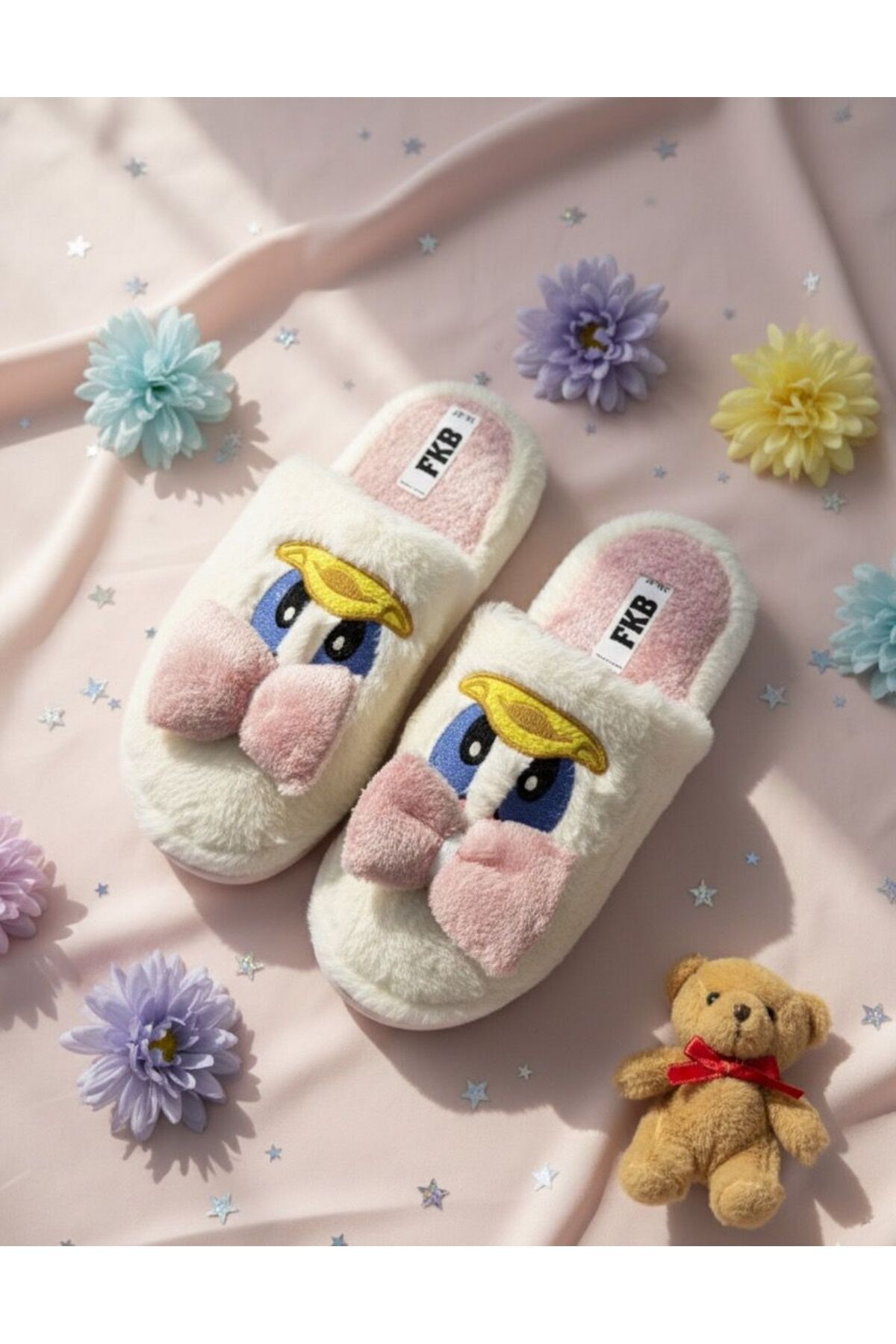 Sevimli Fiyonklu Duffy Ördek Figürlü Nakış İşlemeli Ses Yapmaz Kaymaz Tabanlı Ev Terliği Sevimli Fiyonklu Duffy Ördek Figürlü Nakış İşlemeli Ses Yapmaz Kaymaz Tabanlı Ev Terliği ÖRDEK TERLİK 40-41