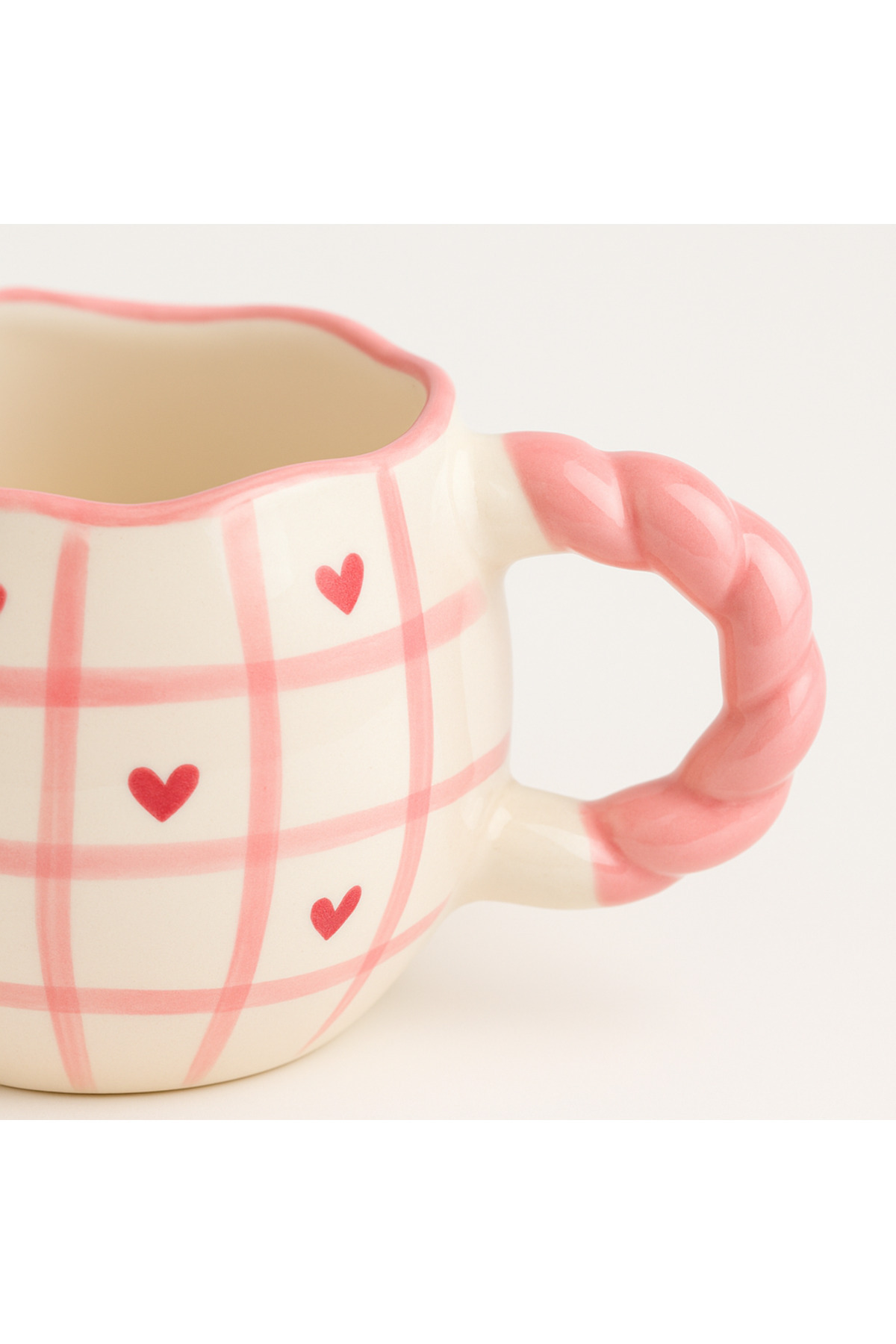 Pembe Ekose Desenli El Yapımı Seramik Kupa – Pembe Kulplu Krem Kahve Kupası – Hediye Kupa – Pembe Ekose Desenli El Yapımı Seramik Kupa – Pembe Kulplu Krem Kahve Kupası – Hediye Kupa – çağ6 تک سایز