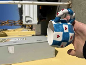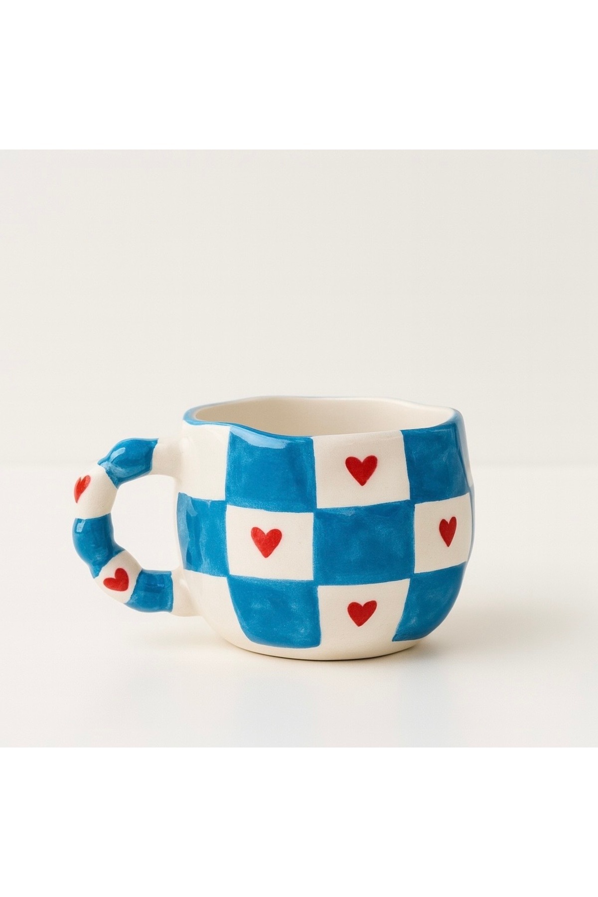 Kare Şerit Kalpli Desenli El Yapımı Seramik Kupa – Mavi Kulplu Krem Kahve Kupası – Hediye Kupa – Kare Şerit Kalpli Desenli El Yapımı Seramik Kupa – Mavi Kulplu Krem Kahve Kupası – Hediye Kupa – çağ18 تک سایز