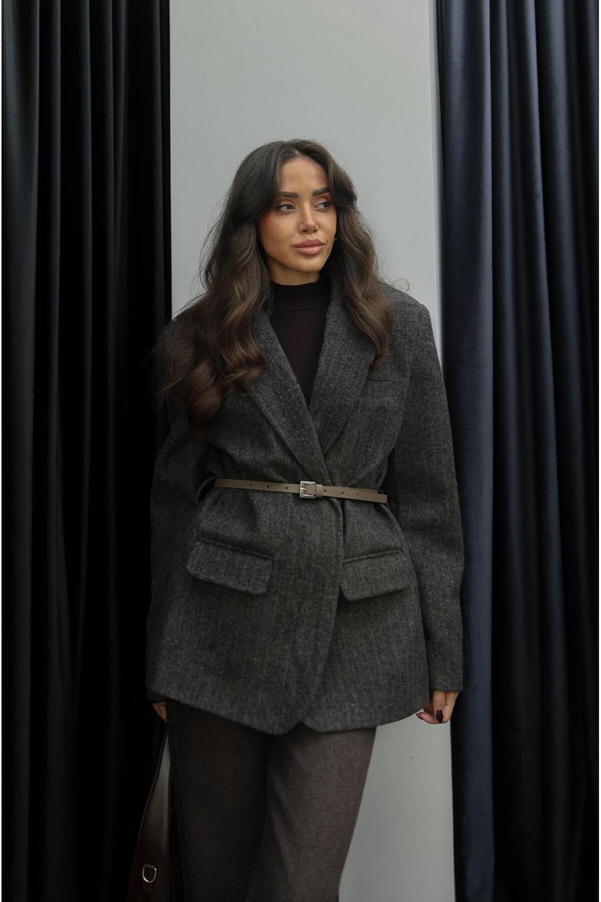 Vizon Çizgili Yün Karışımlı Kemerli Ceket Vizon Çizgili Yün Karışımlı Kemerli Ceket Hcek646 XL