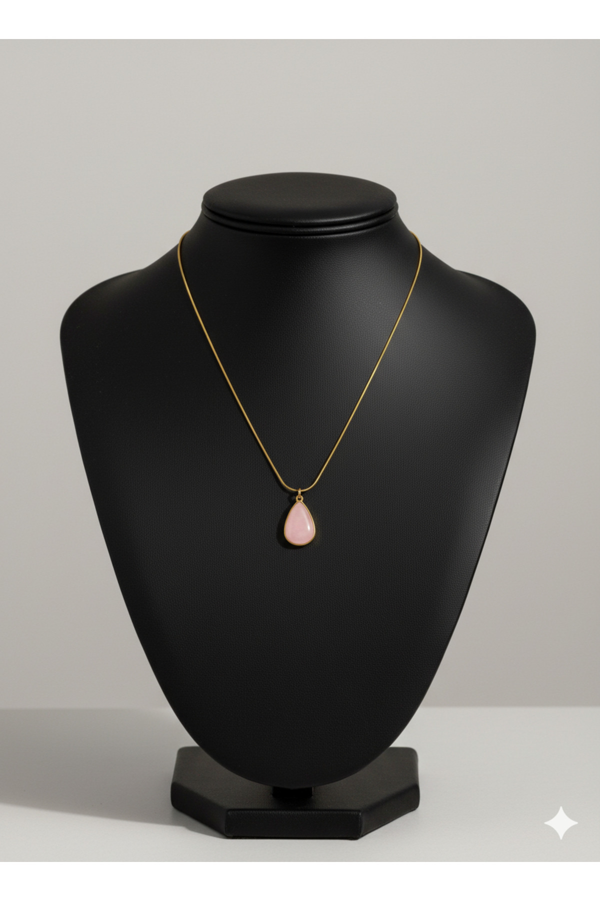 Pembe Damla Kuvars Taşlı Çelik Kolye Pembe Damla Kuvars Taşlı Çelik Kolye PD89 تک سایز