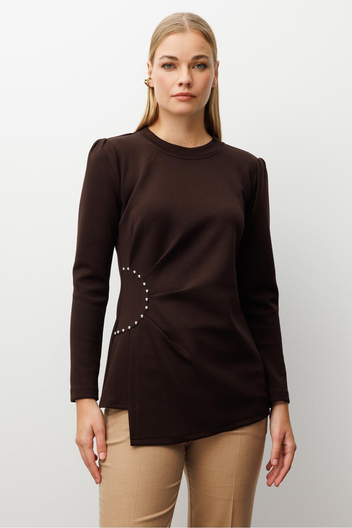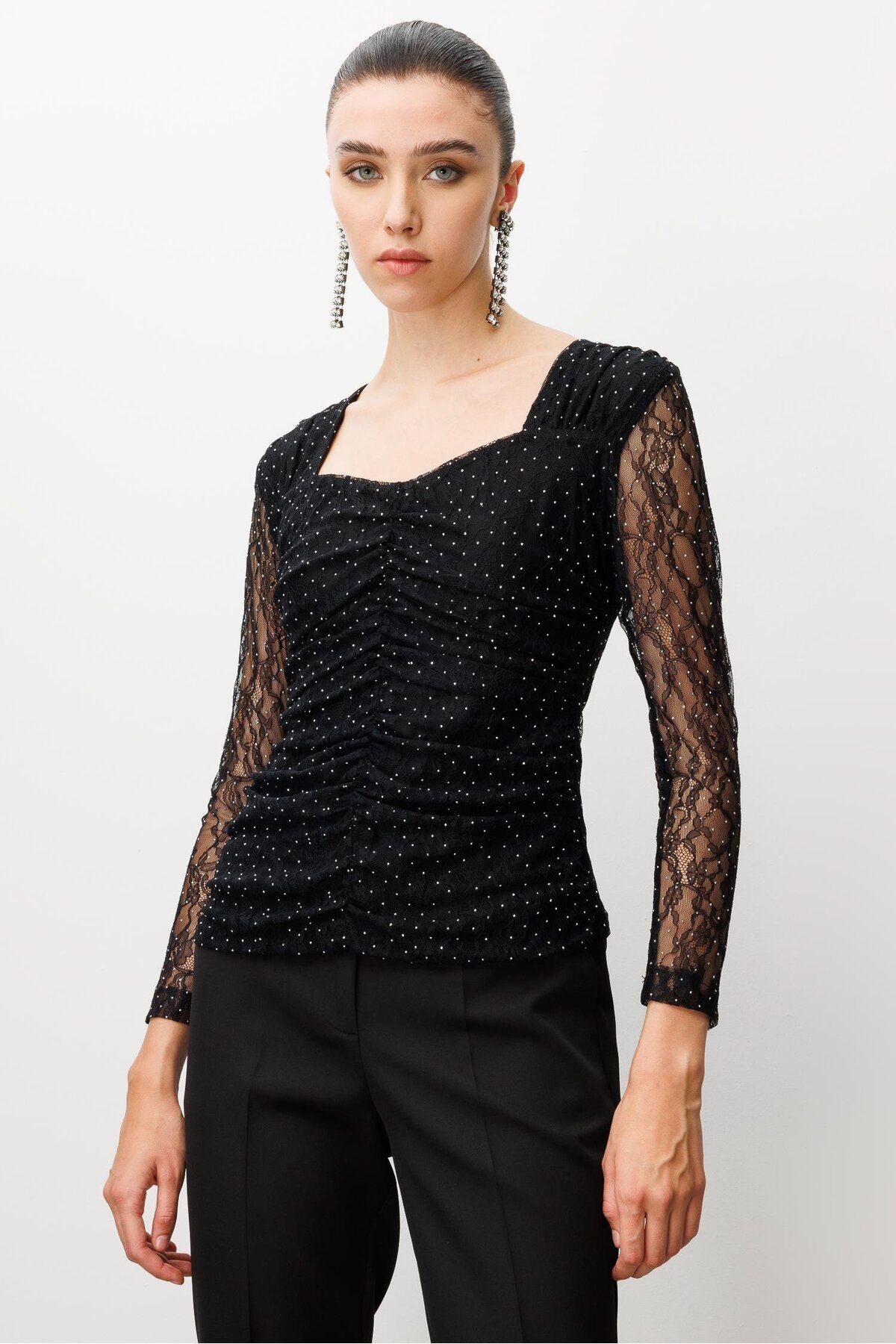 Modailgi Robalı Önü Büzgü Detaylı Taşlı Dantel Bluz Siyah Modailgi Robalı Önü Büzgü Detaylı Taşlı Dantel Bluz Siyah ILG260BLZ10051 4