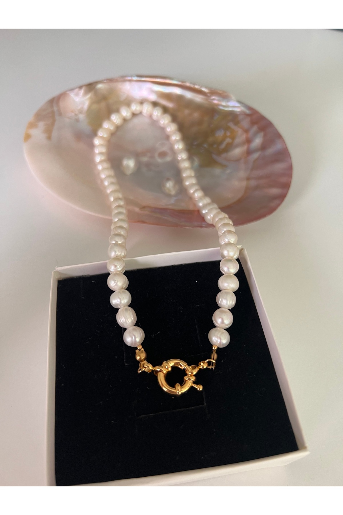 50CM- Çeyrek Kulplu Altın Takılabilen Doğal İnci Kolye-50c 5cm Uzatma Zinciri 50CM- Çeyrek Kulplu Altın Takılabilen Doğal İnci Kolye-50c 5cm Uzatma Zinciri ALTINLIKOLYE تک سایز