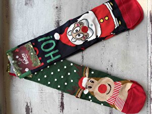 Yılbaşı Konseptli Noel Baba ve Geyik Desenli 2 Çift Pamuk Çorap Yılbaşı Konseptli Noel Baba ve Geyik Desenli 2 Çift Pamuk Çorap YLBŞBYNÇRP تک سایز