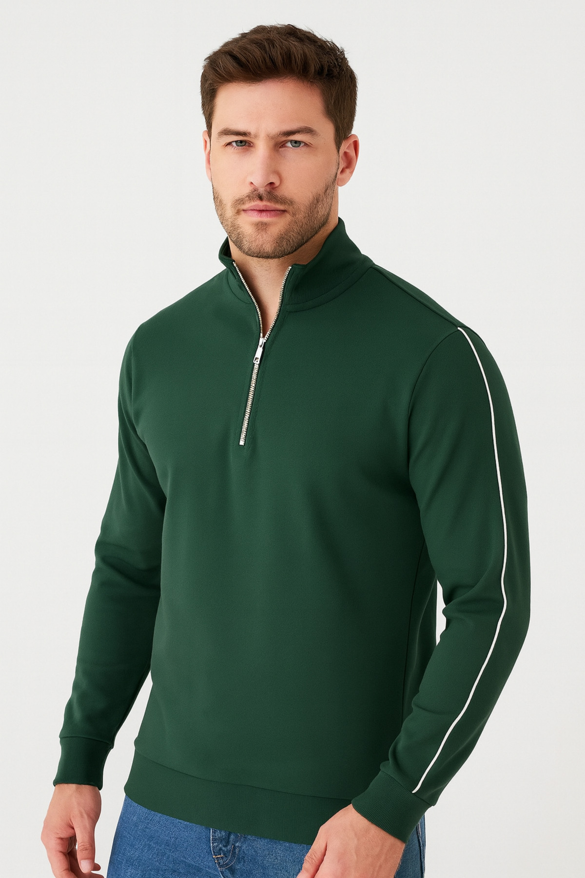 Regular Fit Yarım Fermuarlı Dik Yaka Basic Sweatshirt Regular Fit Yarım Fermuarlı Dik Yaka Basic Sweatshirt W52132BE 3XL