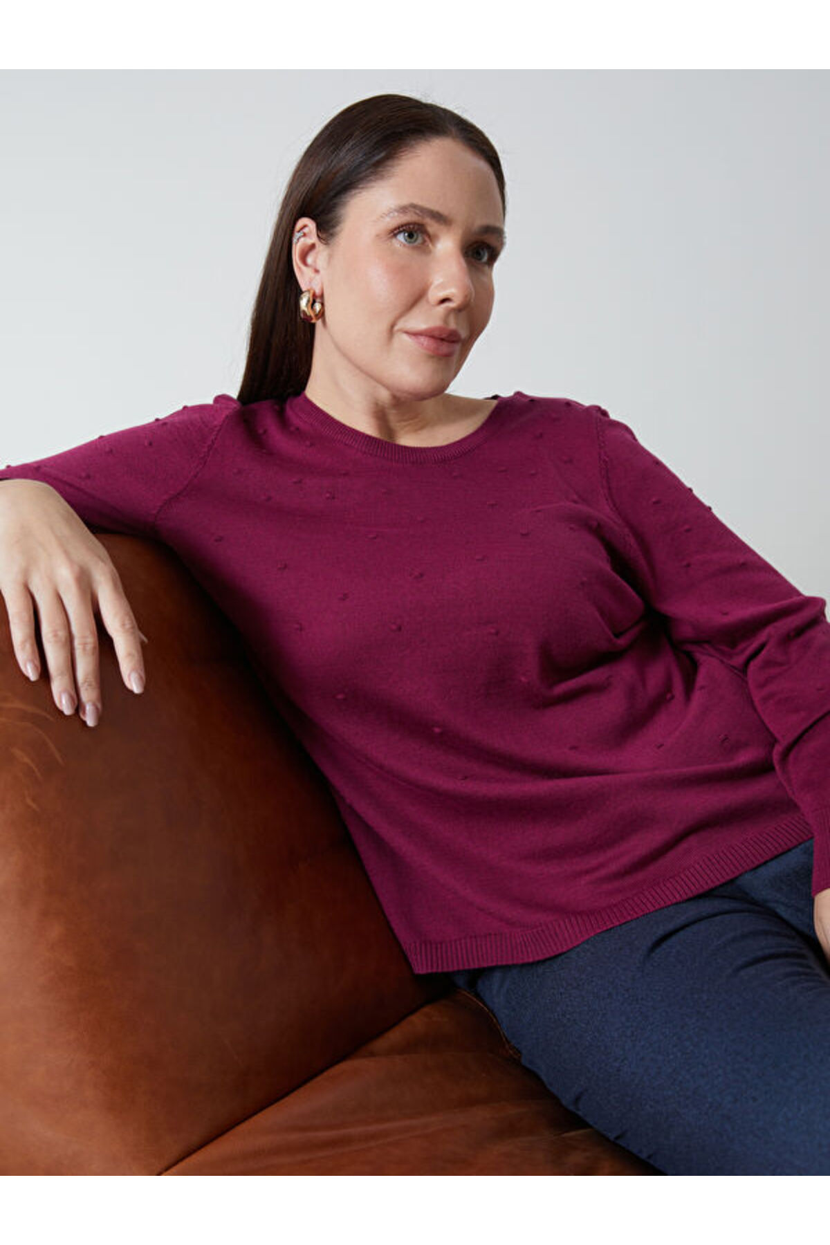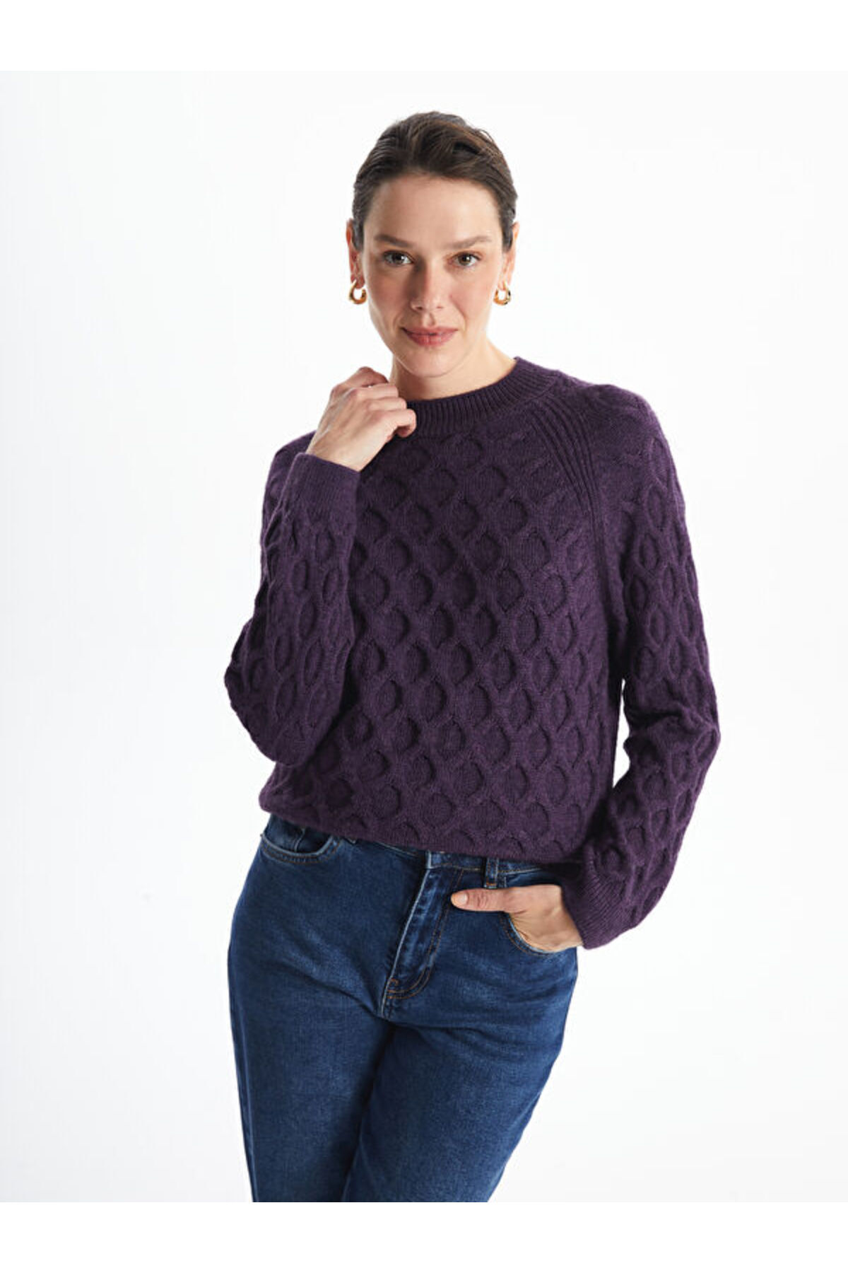 Bisiklet Yaka Kendinden Desenli Uzun Kollu Kadın Triko Kazak Bisiklet Yaka Kendinden Desenli Uzun Kollu Kadın Triko Kazak W40248Z8-Liwensa S