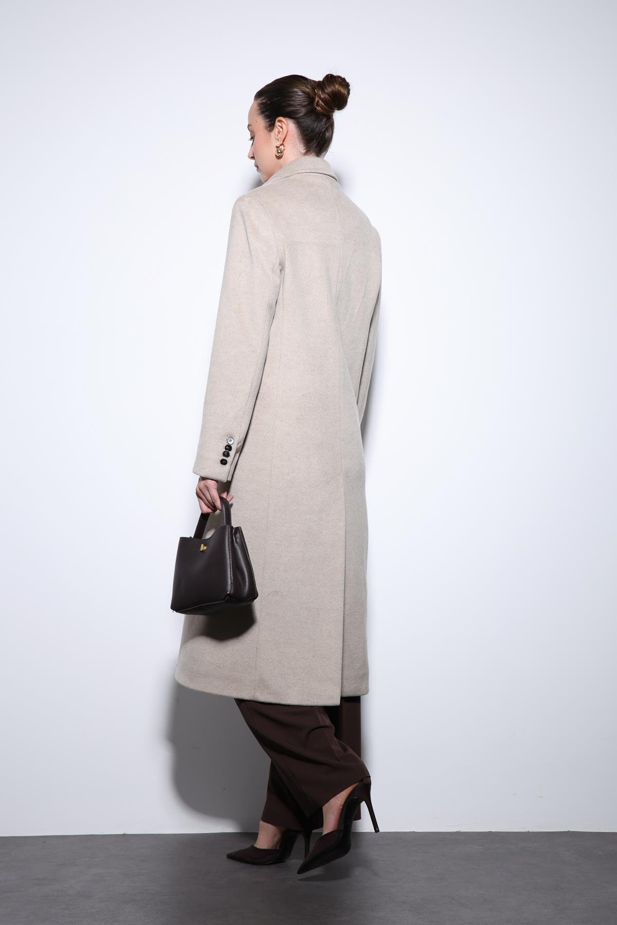 Bej Yün Karışımlı Kruvaze Kadın Kaban Bej Yün Karışımlı Kruvaze Kadın Kaban BA25Y609 XL