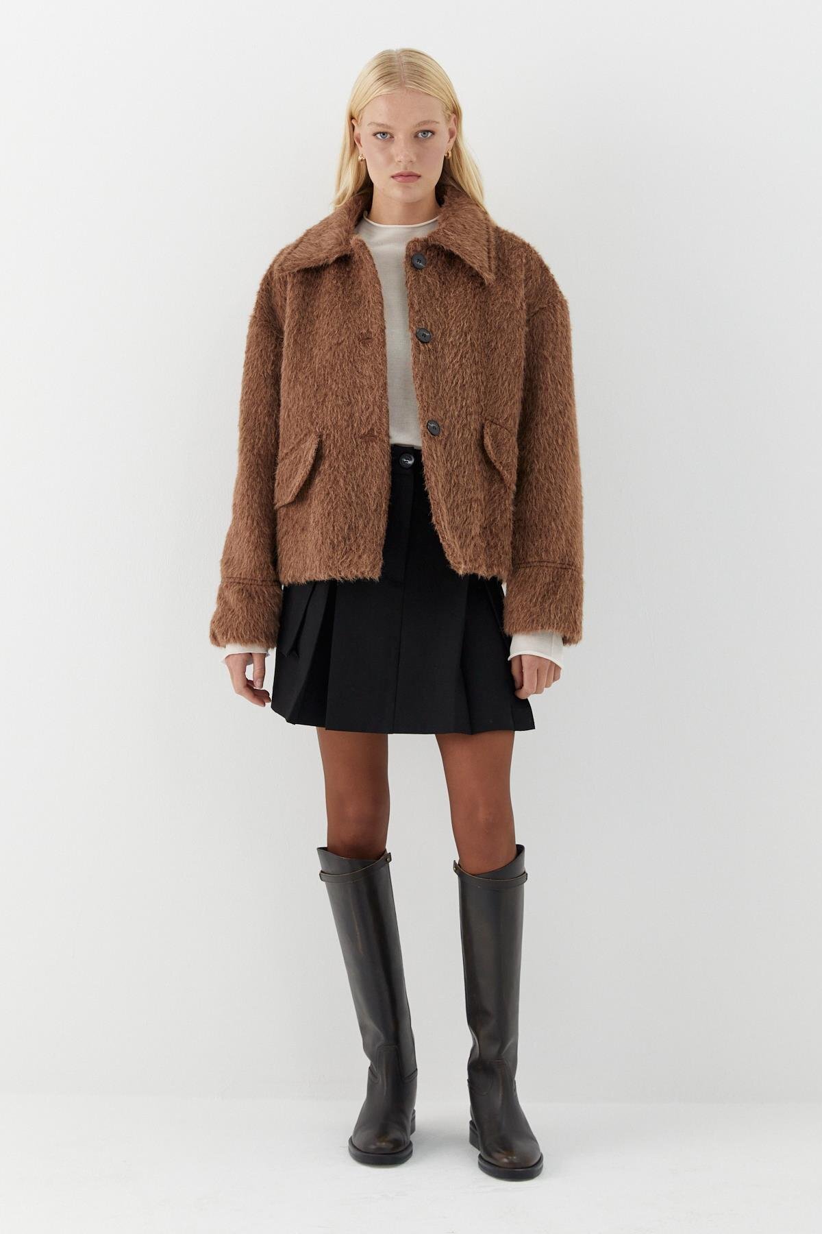 Düğmeli Peluş Kaban Krem Düğmeli Peluş Kaban Krem KZ0887_025 L