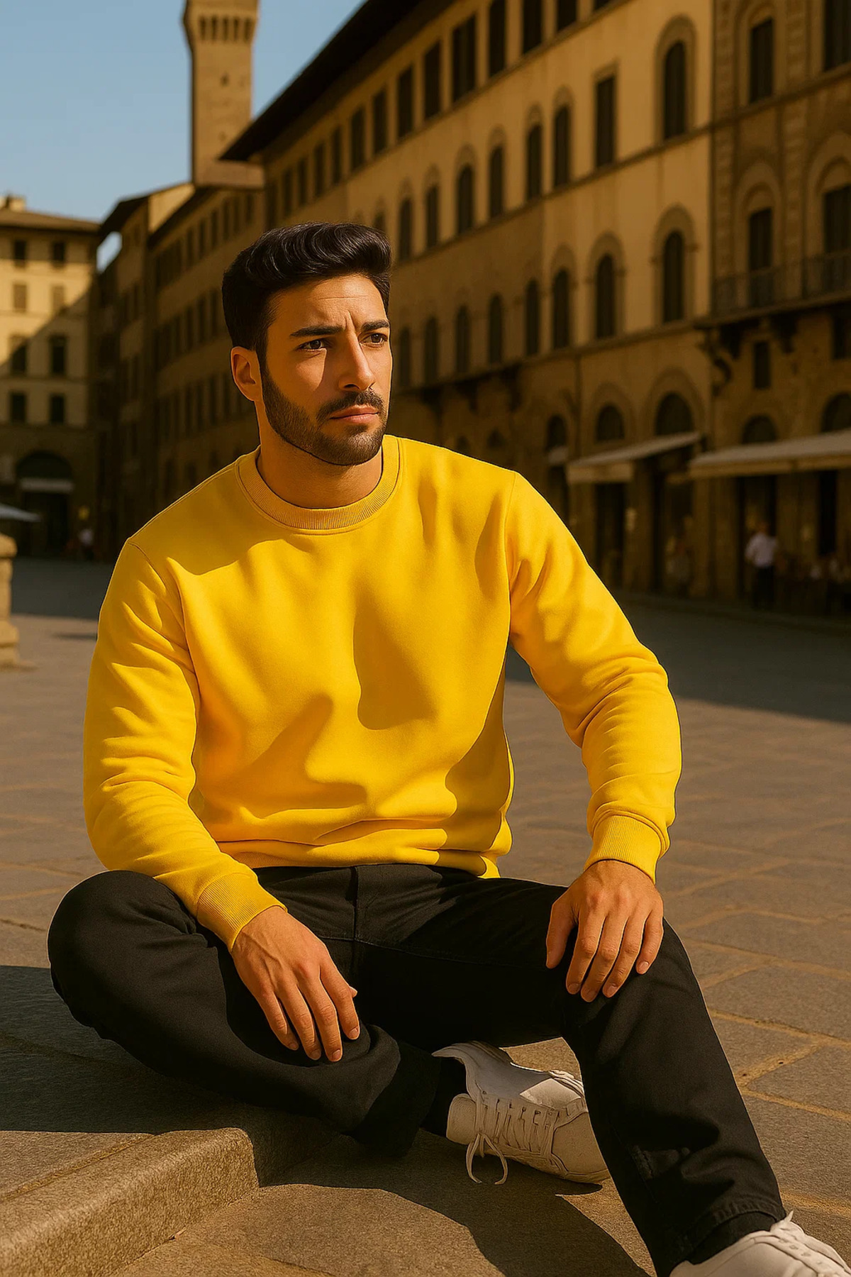 Unisex Kışlık Rahat Uzun Sarı Bol Kazak Unisex Kışlık Rahat Uzun Sarı Bol Kazak COMBINE-SWT.0026-3 2XL