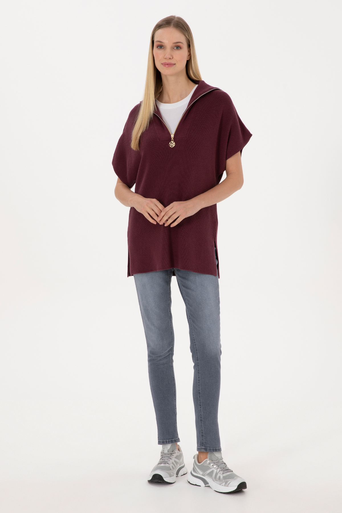 Kadın Bordo V Yaka Fermuarlı Süveter 50317570-VR177 Kadın Bordo V Yaka Fermuarlı Süveter 50317570-VR177 2XL