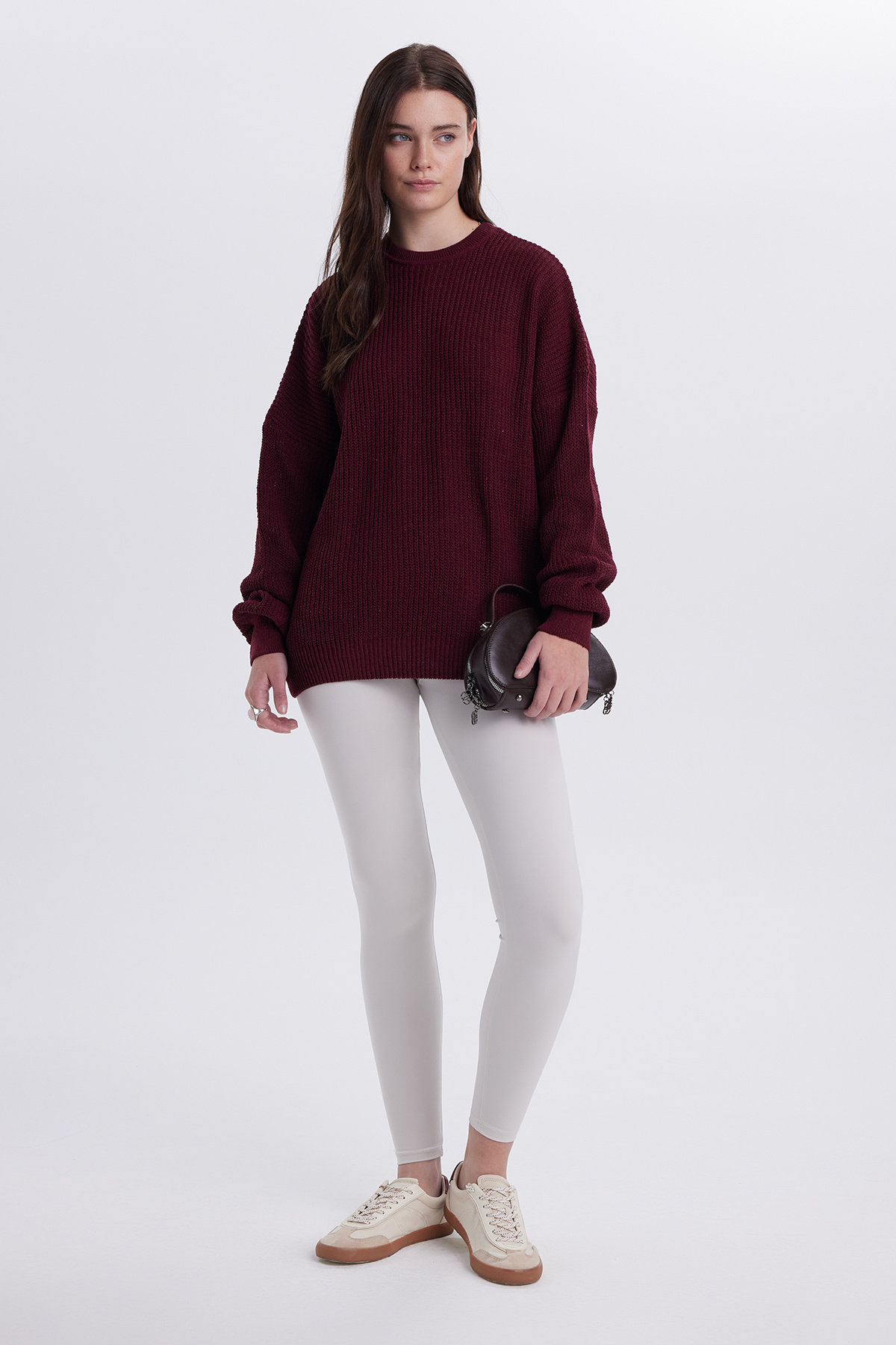 Kadın Oversize Geniş Kesim Örme Detaylı Bisiklet Yaka Bordo Kazak Kadın Oversize Geniş Kesim Örme Detaylı Bisiklet Yaka Bordo Kazak BYKZ2531 L/XL