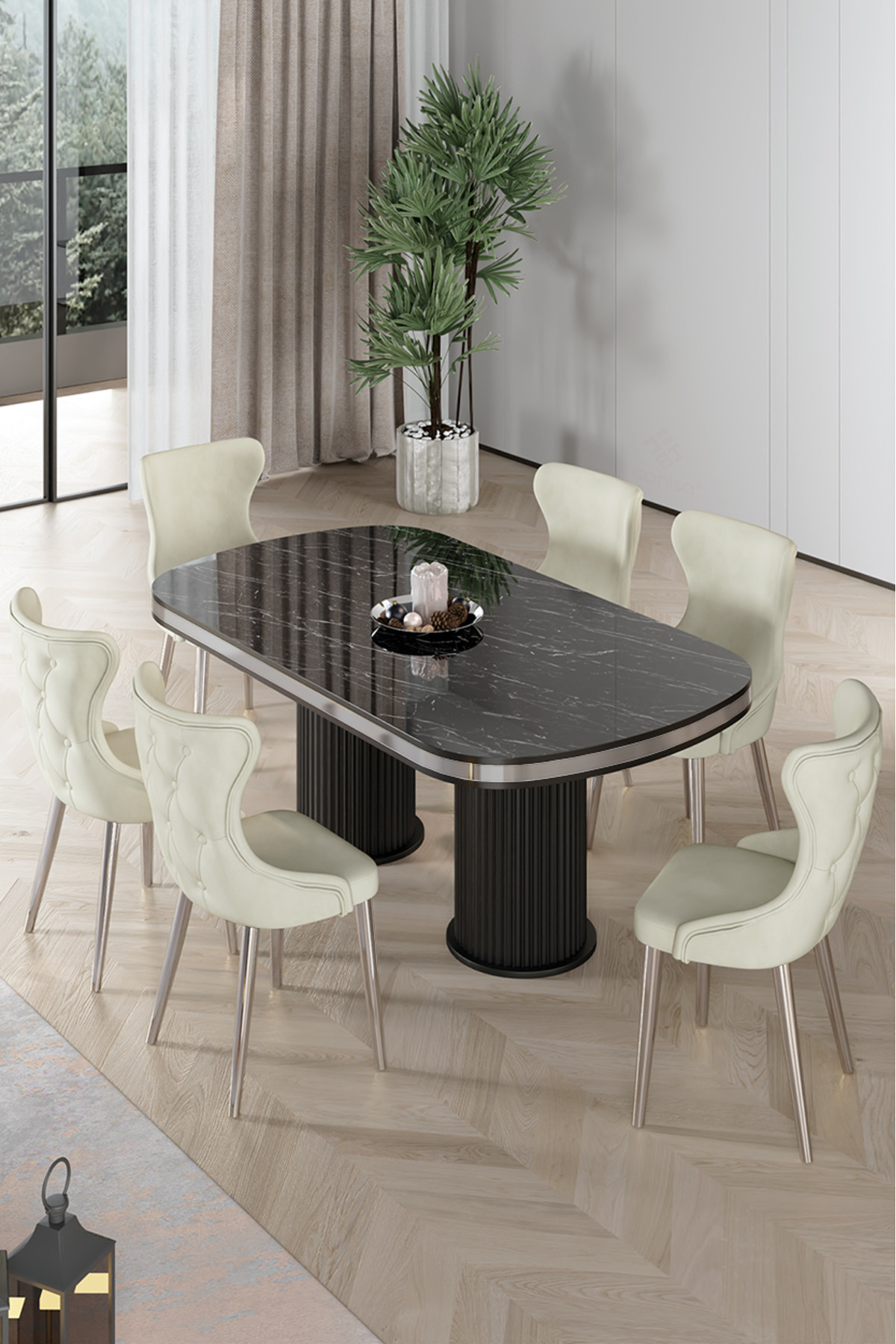 Galya Serisi Lak Panel 90x168 Sabit Sonata Mutfak Masa Takımı 6 Gri Sandalye Galya Serisi Lak Panel 90x168 Sabit Sonata Mutfak Masa Takımı 6 Gri Sandalye GLY06SNTKRM تک سایز