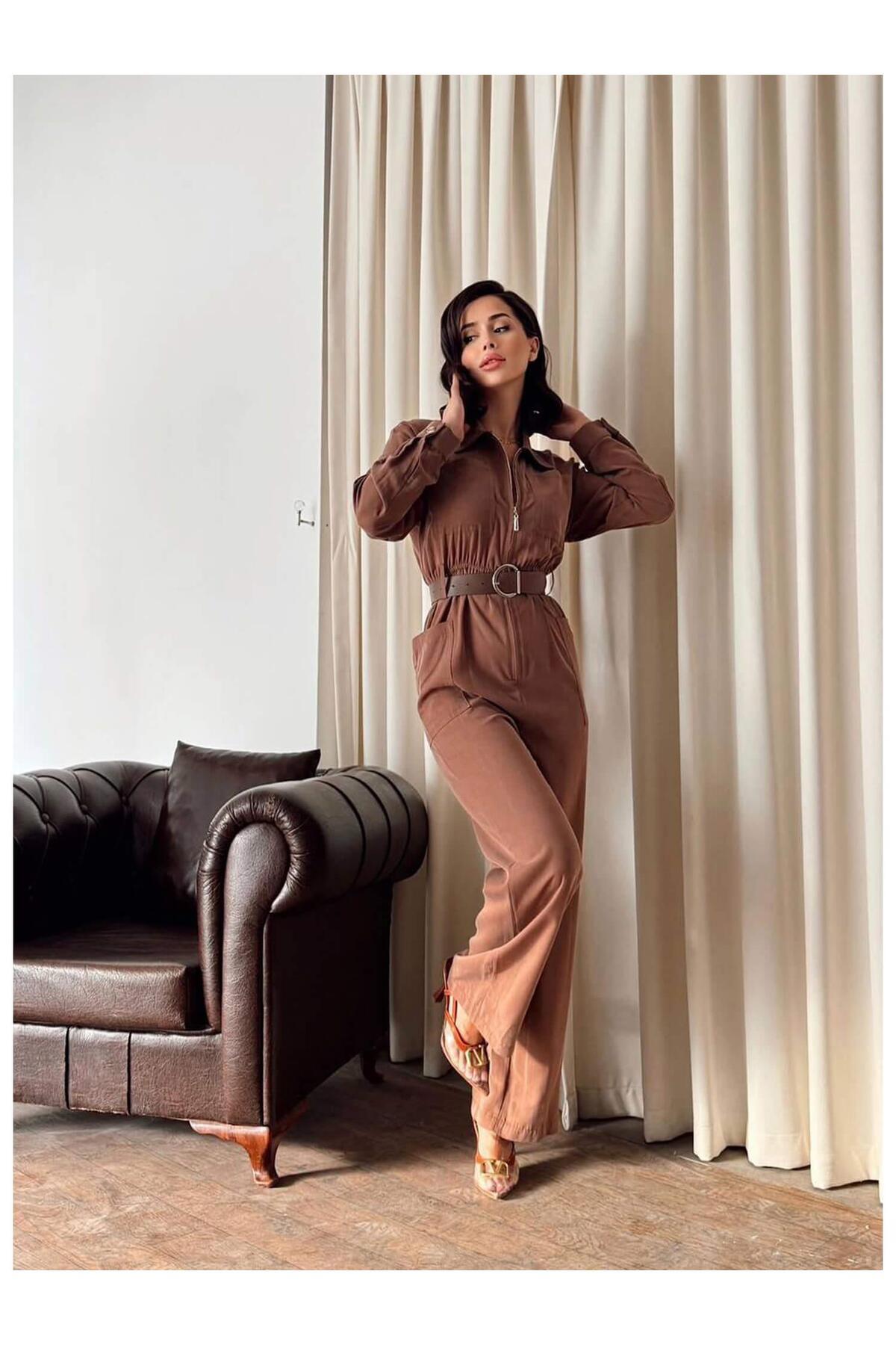 Fermuarlı Kemerli Tulum 6043 Kahve Fermuarlı Kemerli Tulum 6043 Kahve W25W-MCX-00052 L