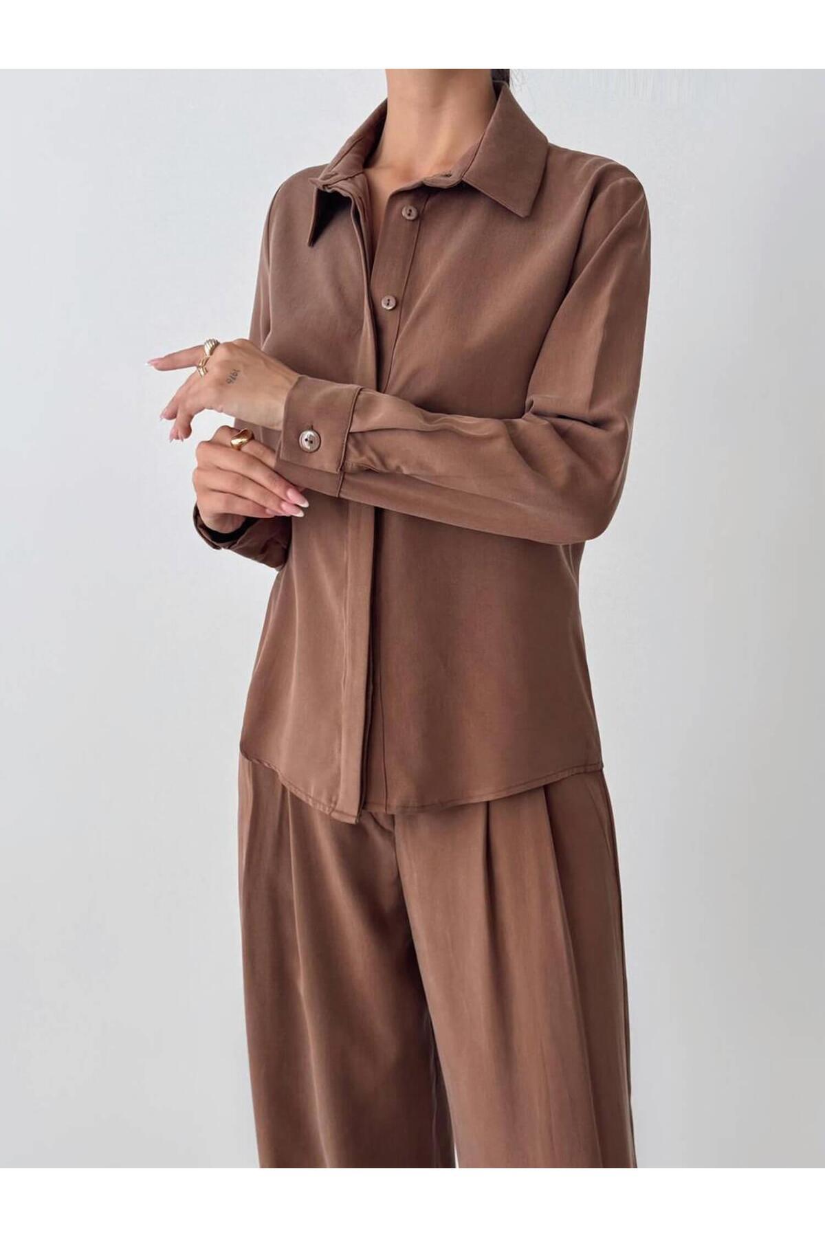 Gizli Patlı Gömlek Pantolon Takım 9004 Kahve Gizli Patlı Gömlek Pantolon Takım 9004 Kahve W25W-MCT-00006 L