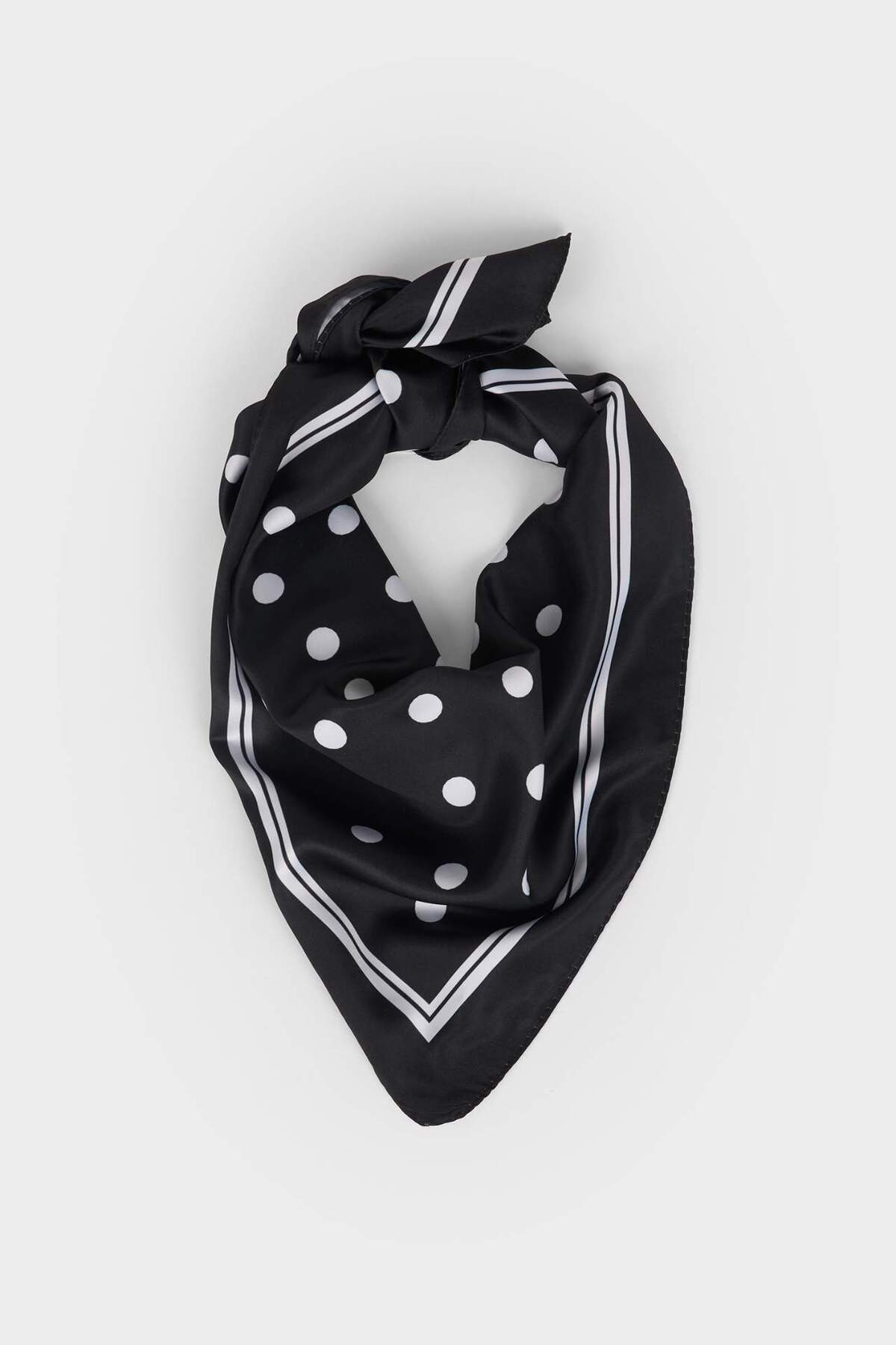 Fular bandana siyah zemin beyaz puantiyeli 70x70 puantıyelıler saten kumaştır. Fular bandana siyah zemin beyaz puantiyeli 70x70 puantıyelıler saten kumaştır. ayazzzz تک سایز