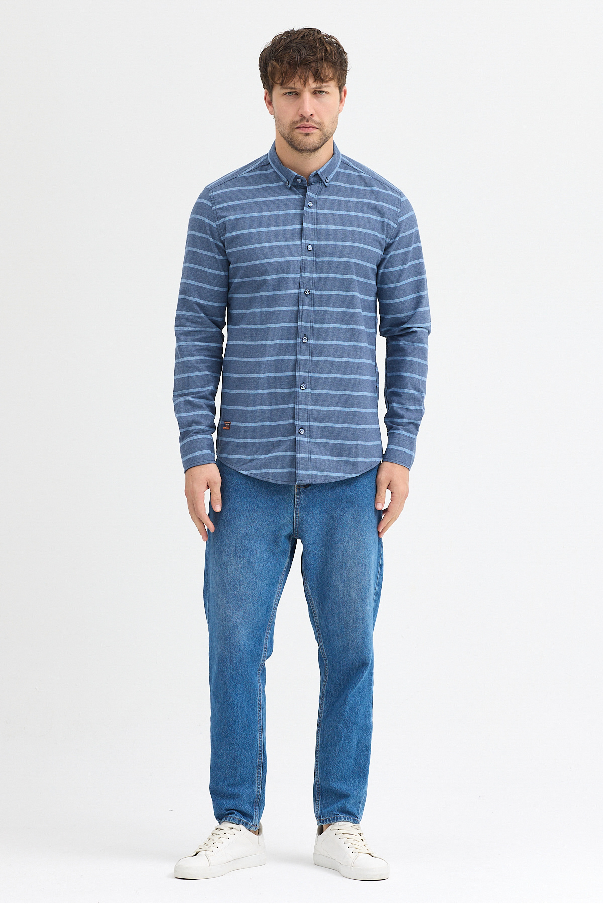 Regular Fit Pamuk Karışımlı Melanj Çizgili Düğmeli Yaka Erkek Gömlek Regular Fit Pamuk Karışımlı Melanj Çizgili Düğmeli Yaka Erkek Gömlek 20150850 2XL