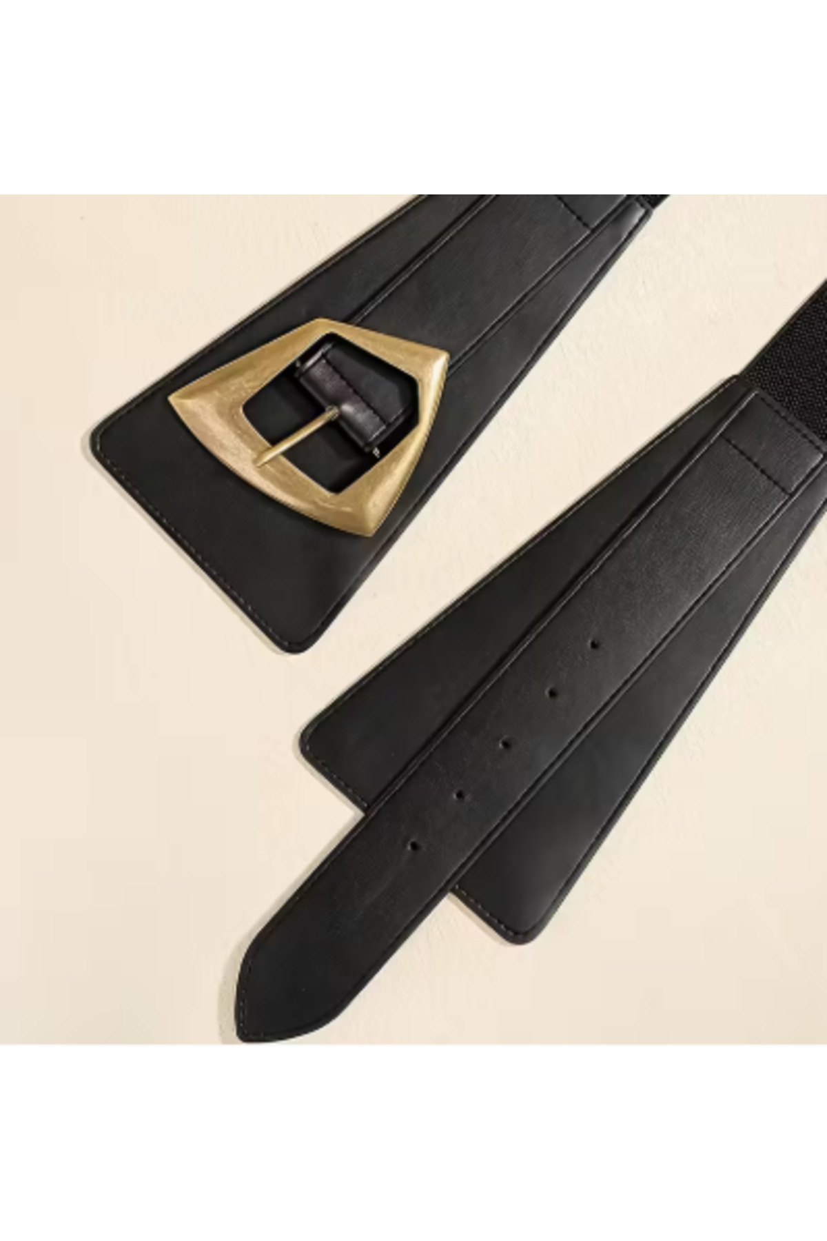 Siyah geometrik metal tokalı geniş bel kemer Siyah geometrik metal tokalı geniş bel kemer 03074 S/L
