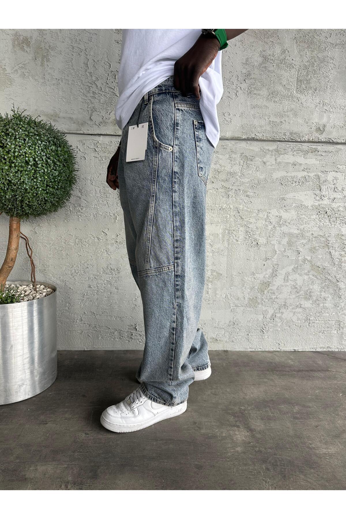 Dikiş Detaylı Mavi Yıkamalı Relax Baggy Jean Dikiş Detaylı Mavi Yıkamalı Relax Baggy Jean KP-931-MAVİ 36