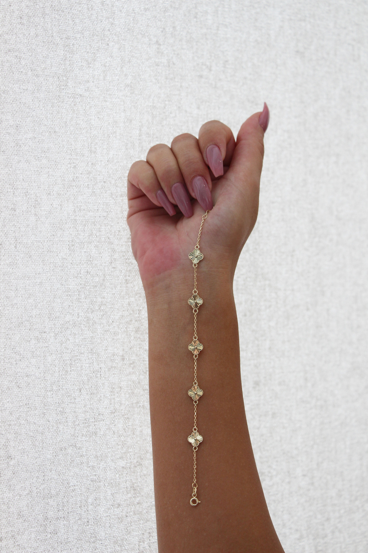 Beşli Yonca Zarif Altın Bileklik (17cm-18cm Ayarlanabilir Zincirli) Beşli Yonca Zarif Altın Bileklik (17cm-18cm Ayarlanabilir Zincirli) BL03405 17 cm