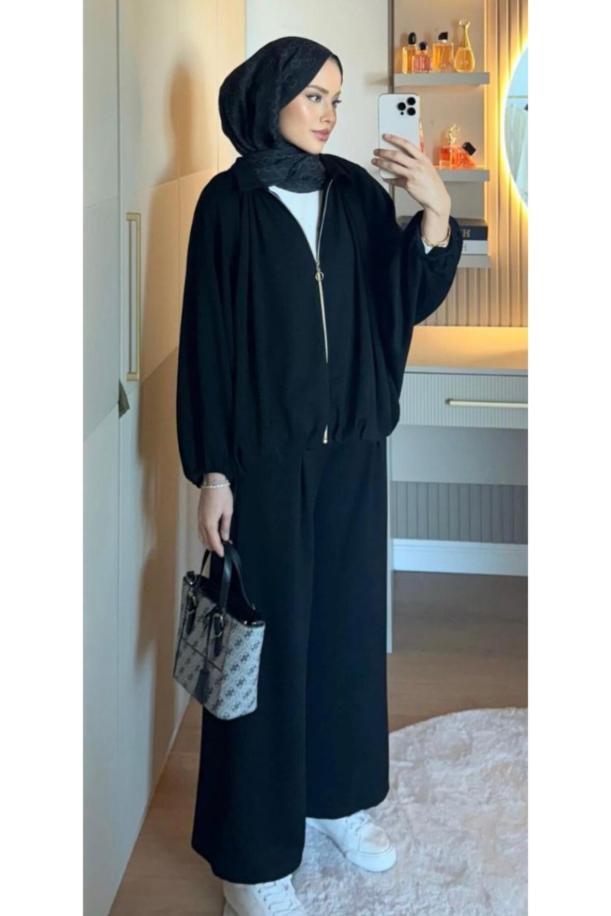 Kadın Siyah Tesettür Takım – %100 Pamuklu Kumaş, Günlük Kombin, Modern Kalıp, Rahat Şık Stil Kadın Siyah Tesettür Takım – %100 Pamuklu Kumaş, Günlük Kombin, Modern Kalıp, Rahat Şık Stil M-E-fermuarlı XL