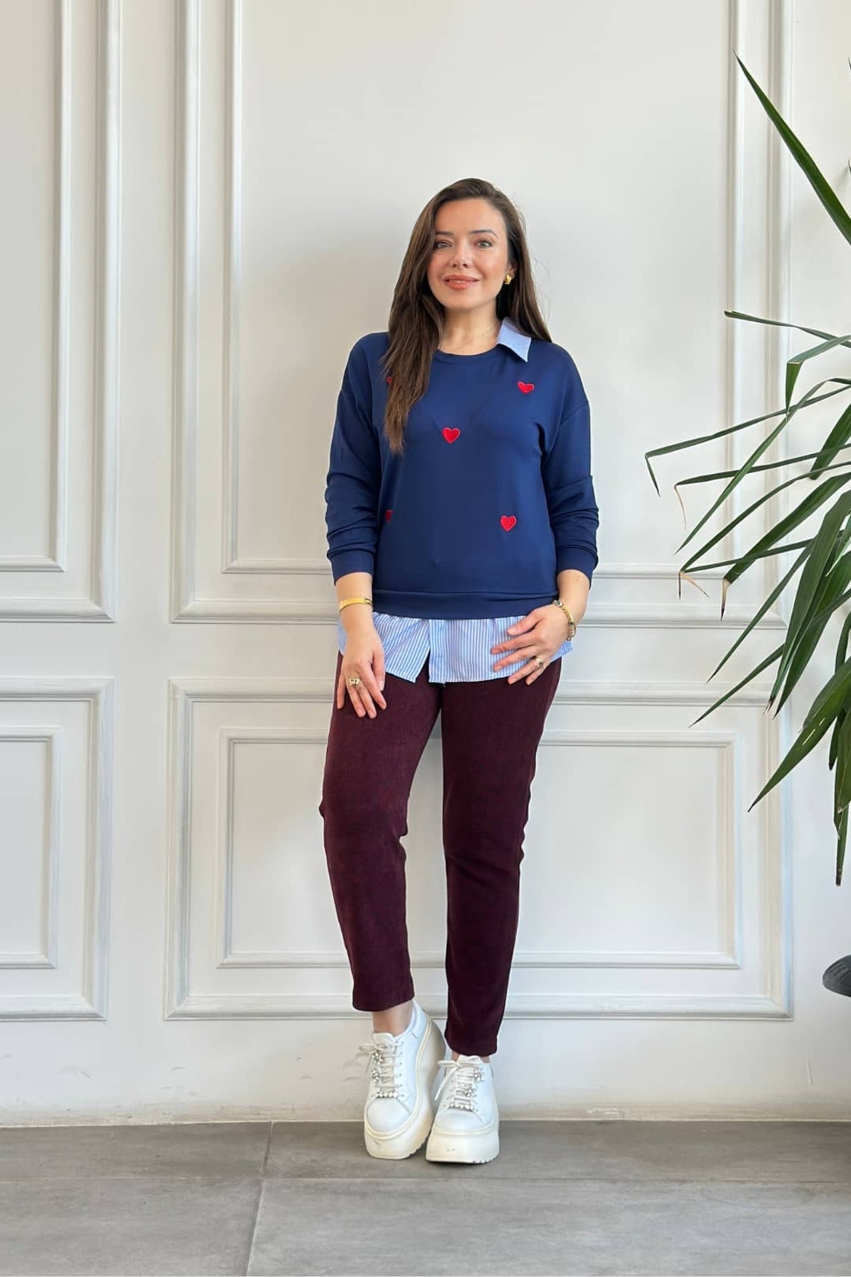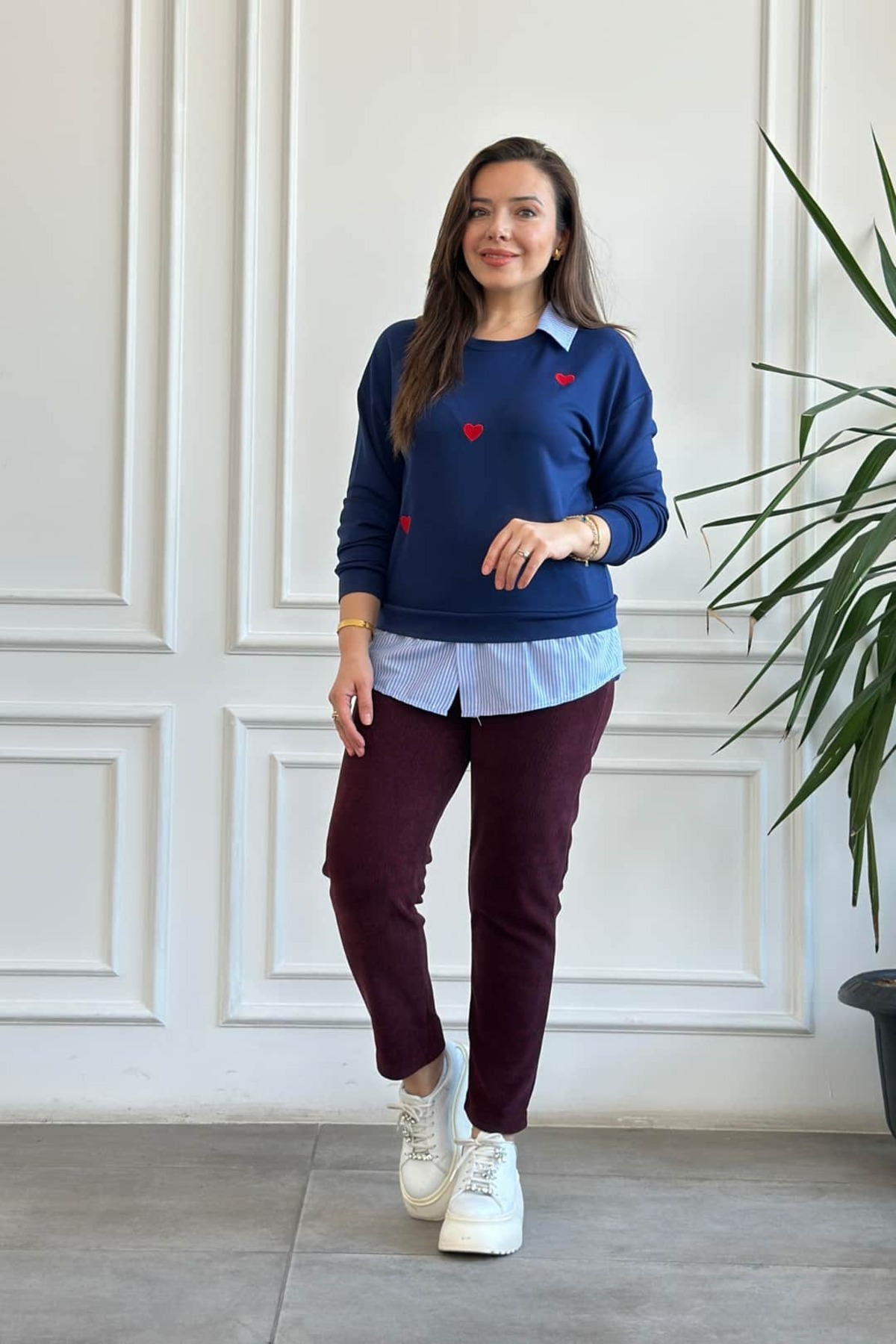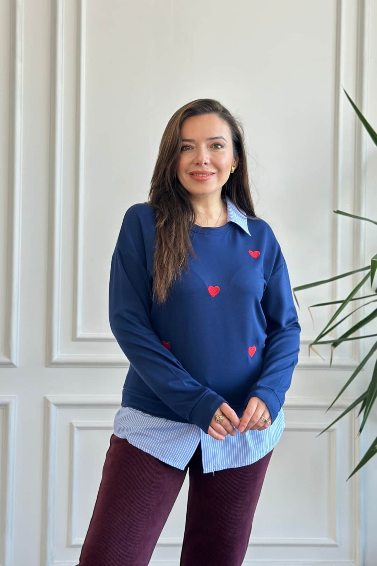 Kalp Nakışlı Polo Yaka Gömlek Detaylı Sweat Kalp Nakışlı Polo Yaka Gömlek Detaylı Sweat kalp-nakisli-polo-yaka-gomlek-detayli-sw XL