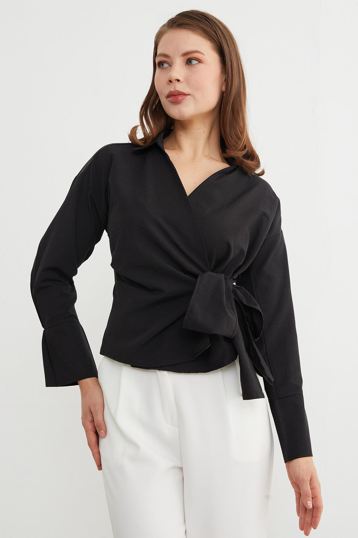 Basic Kruvaze Bağlamalı Gömlek Basic Kruvaze Bağlamalı Gömlek 26KGB8008134082 L