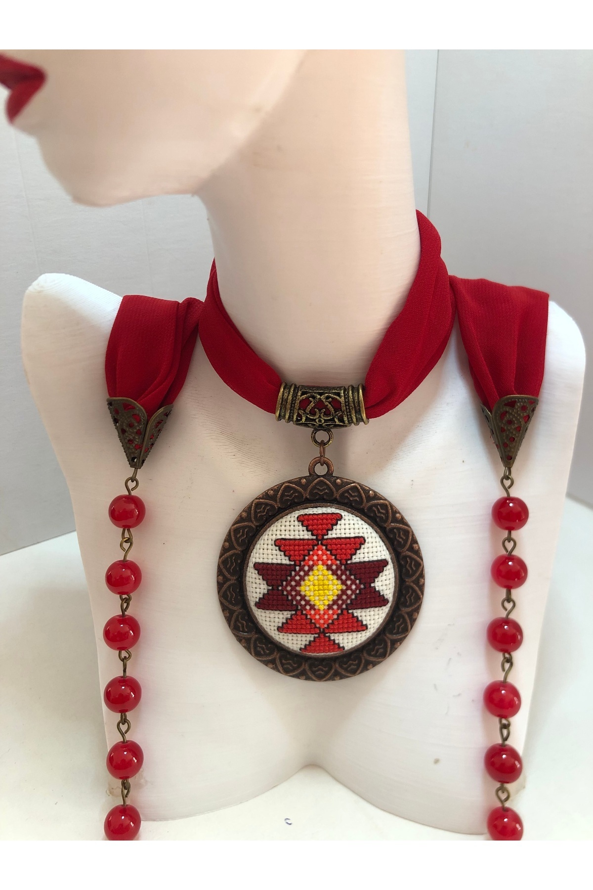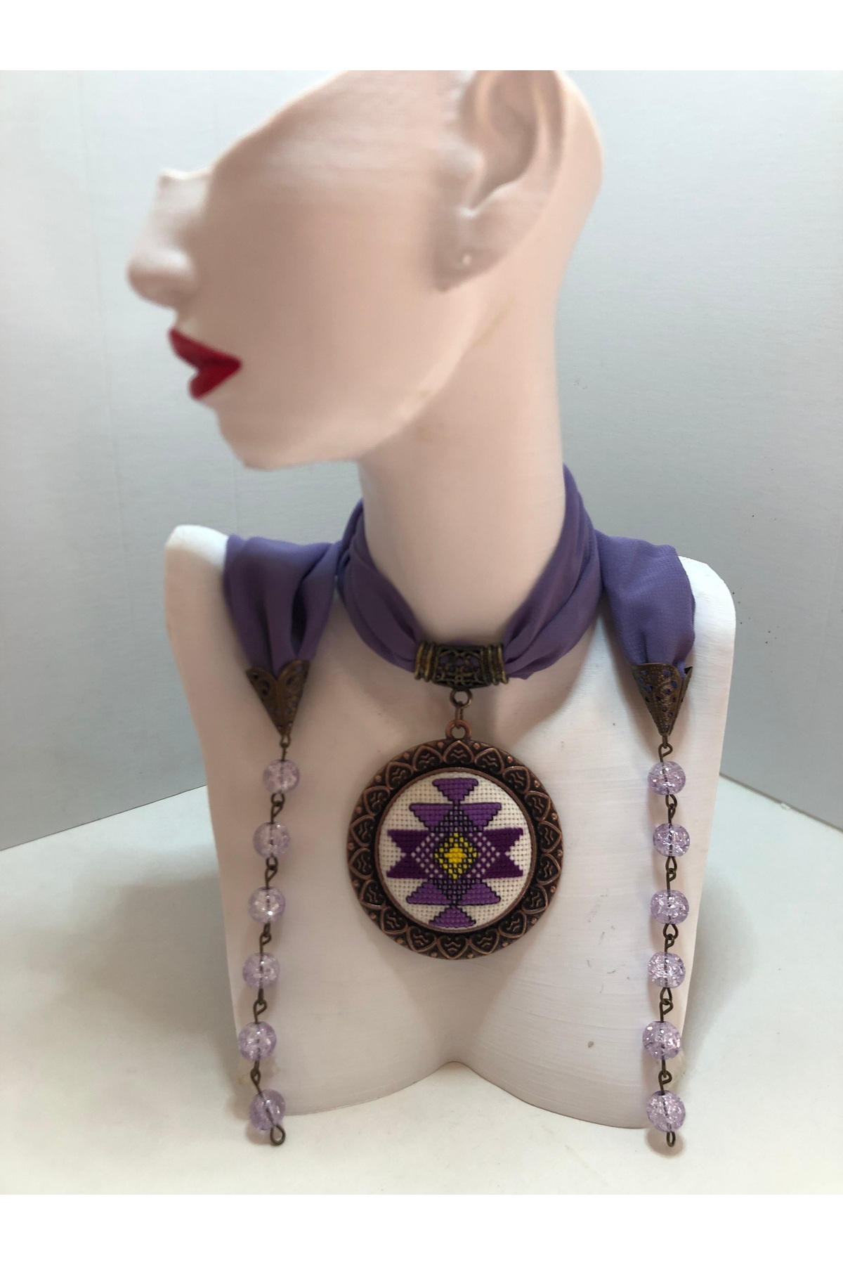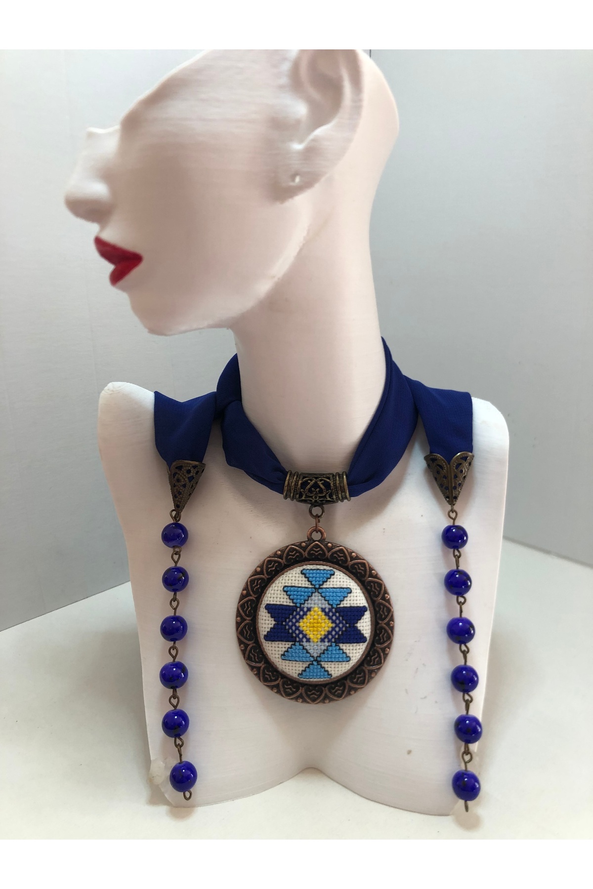 Kanaviçe İşlemeli Fular Kolye Kanaviçe İşlemeli Fular Kolye KİFULARKLY02 L