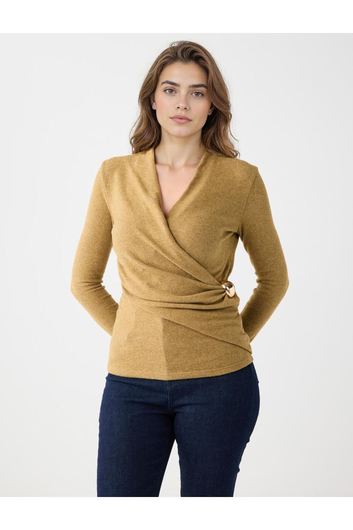 Yağ Yeşili Kruvaze Yaka Yumuşak Dokulu Örme Bluz Yağ Yeşili Kruvaze Yaka Yumuşak Dokulu Örme Bluz 5WW035874 XL