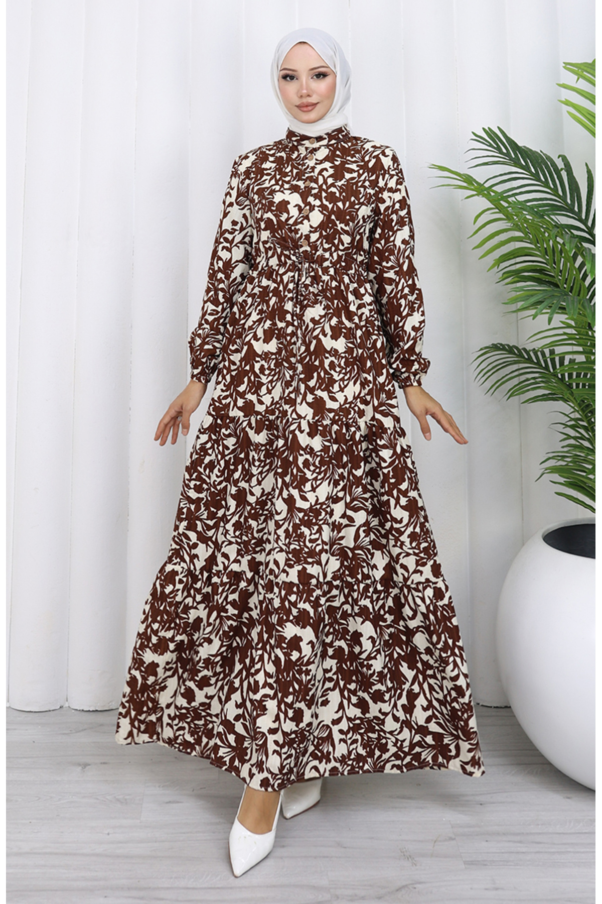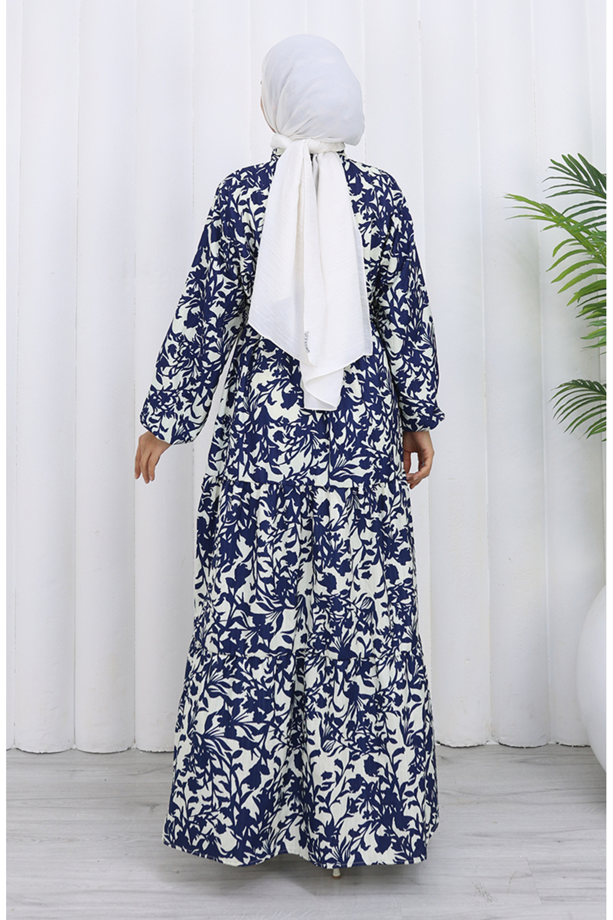 Hakim Yaka Beli Bağcıklı Desenli Elbise 0190-04 Lacivert Hakim Yaka Beli Bağcıklı Desenli Elbise 0190-04 Lacivert YNAZRA0190 52-54