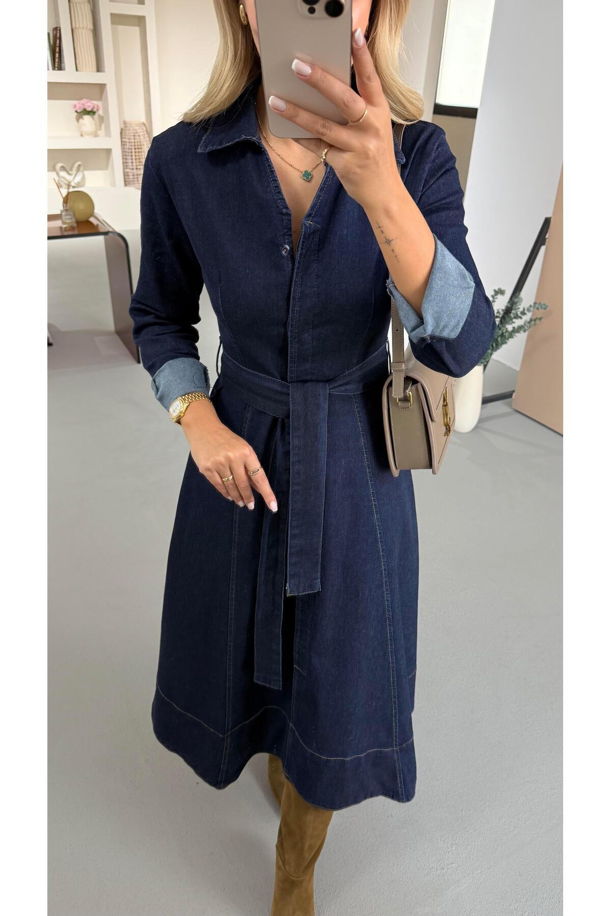 Boydan Düğmeli Asimetrik Kesim Lacivert Likralı Denim Elbise Boydan Düğmeli Asimetrik Kesim Lacivert Likralı Denim Elbise ELB-0756-LCV XL