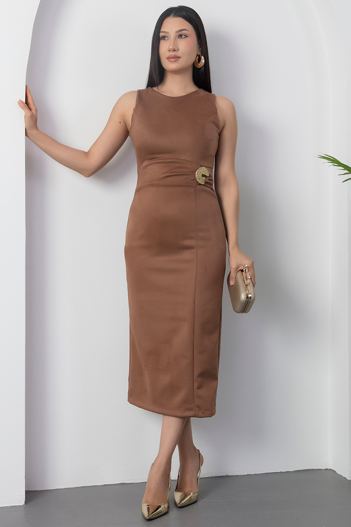 Beli Tokalı Bisiklet Yaka Nubuk Elbise DKS1343 Beli Tokalı Bisiklet Yaka Nubuk Elbise DKS1343 25K69116H16 2XL