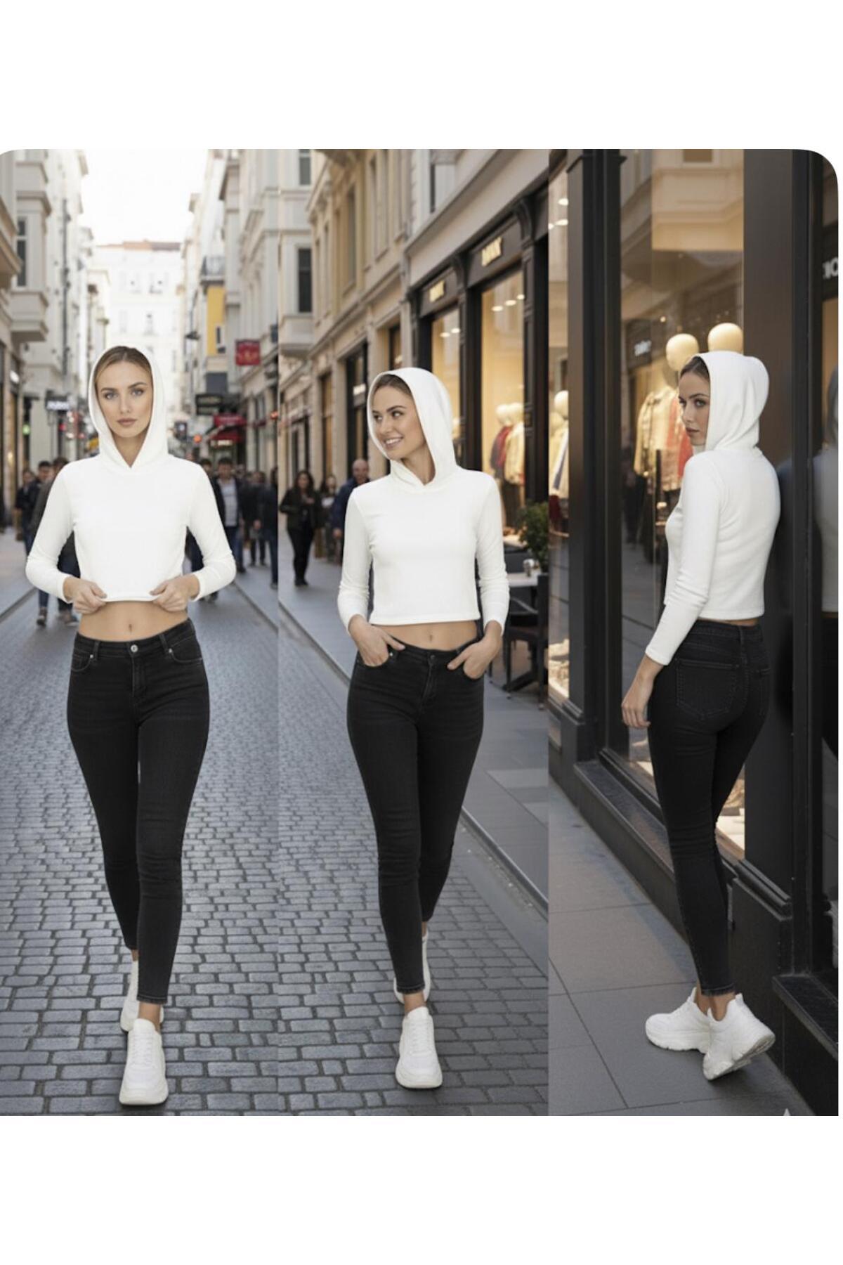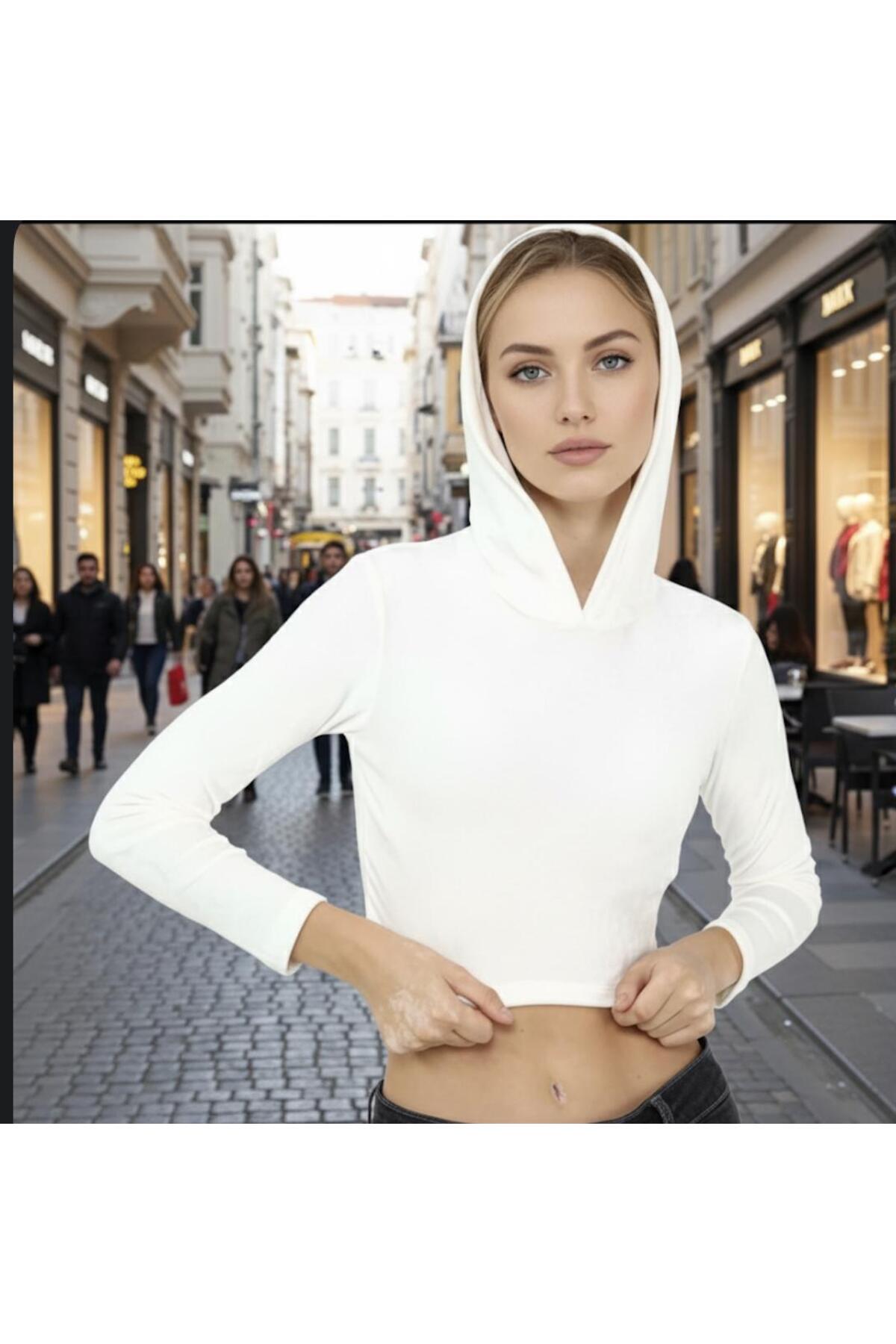Kadın Yeni Sezon Kapişonlu Yaka Kadife Krop Kadın Yeni Sezon Kapişonlu Yaka Kadife Krop kap15 XL